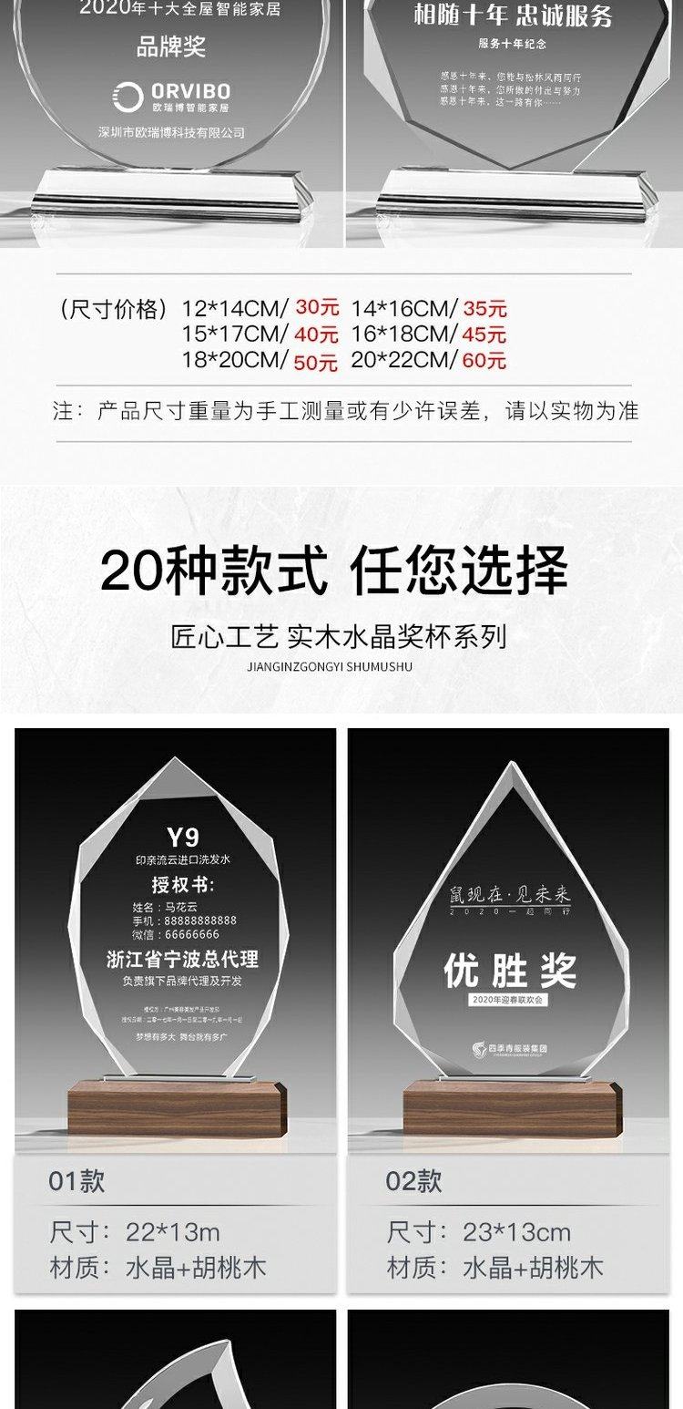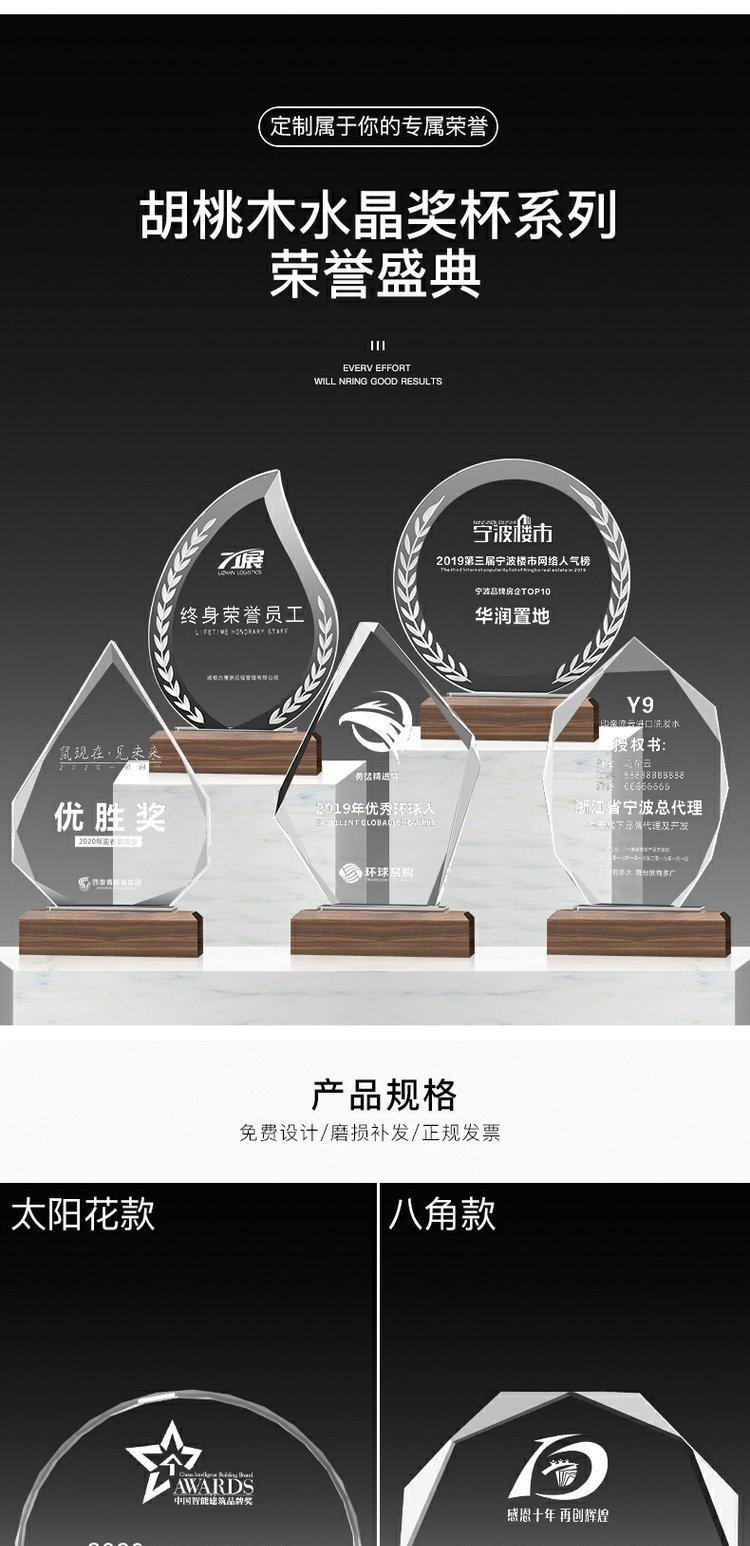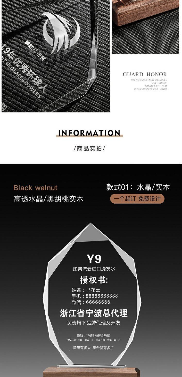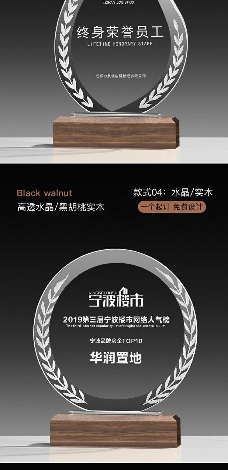 水晶奖杯定制荣誉奖牌定做创意授权牌企业优秀员工年会颁奖纪念品