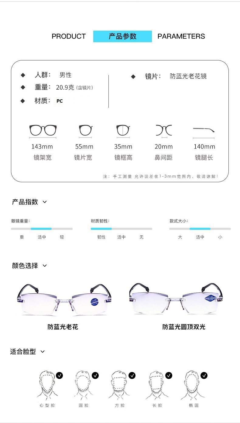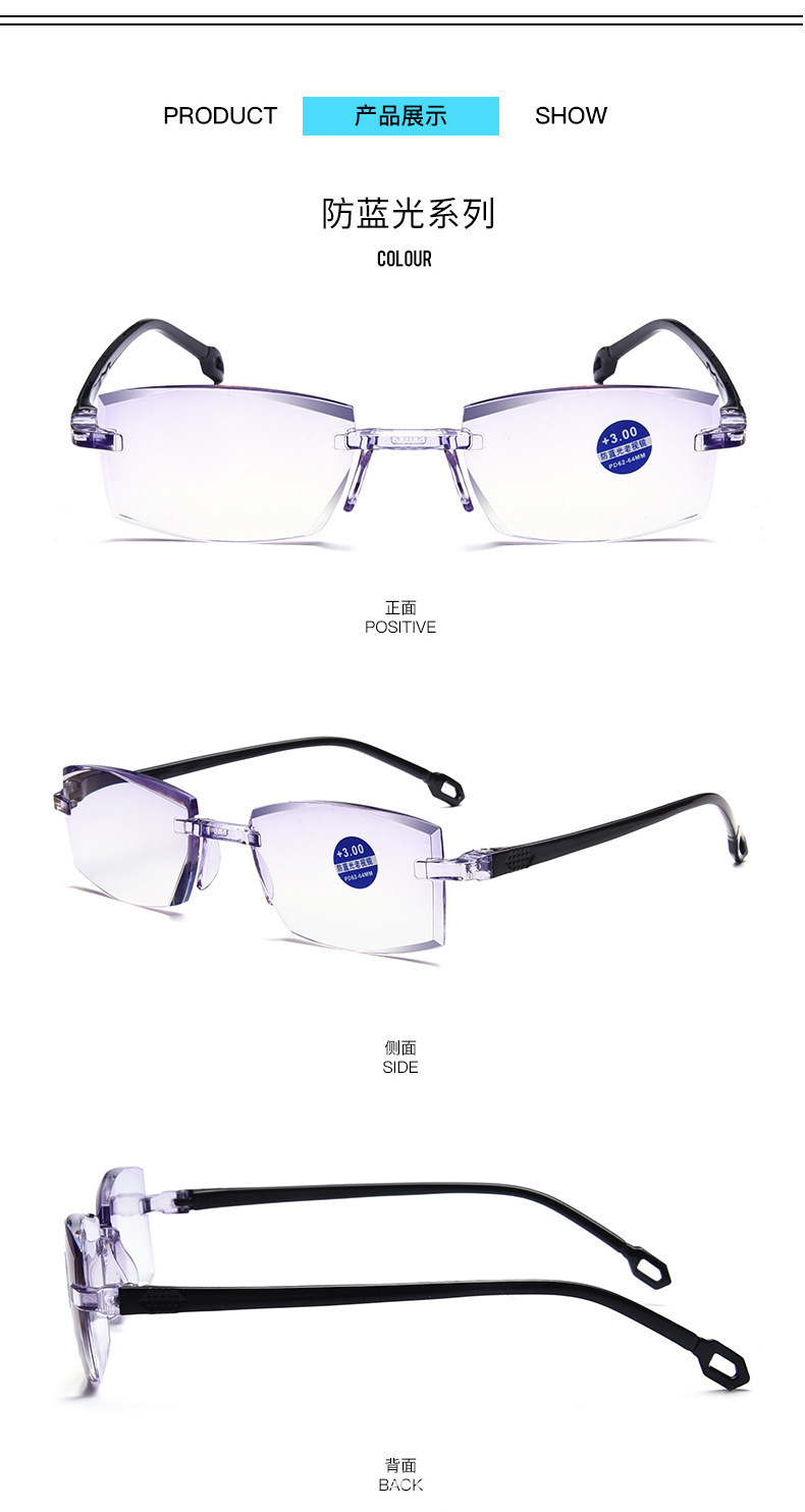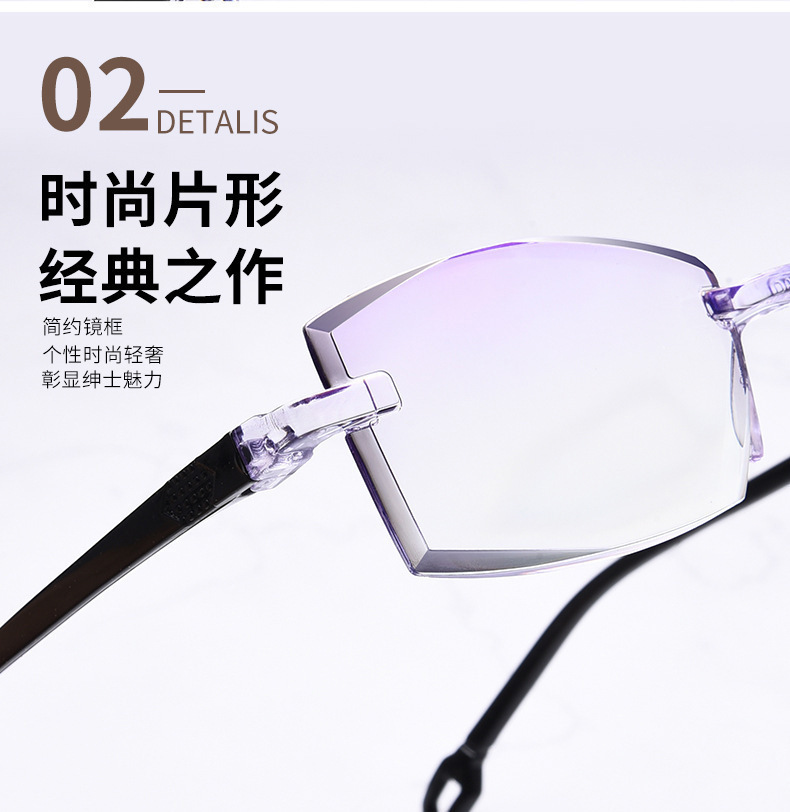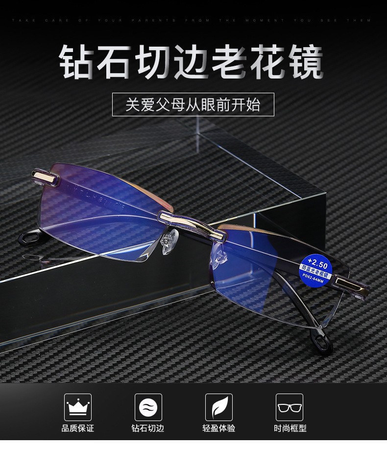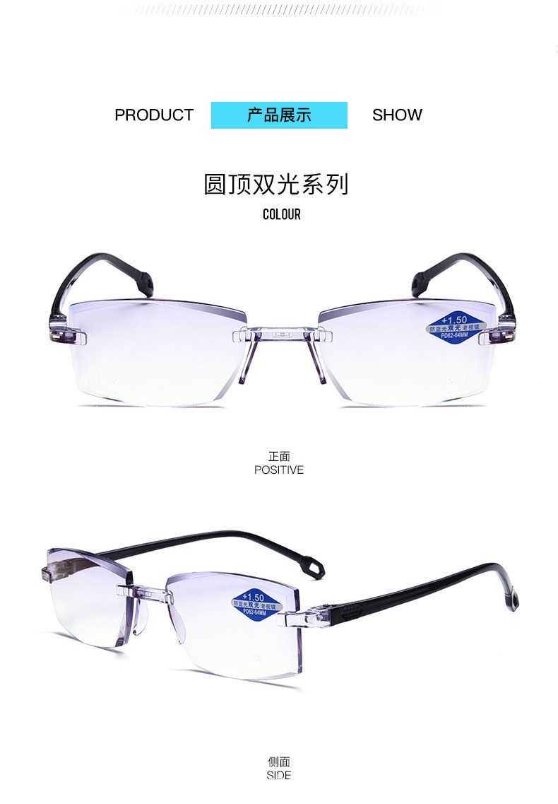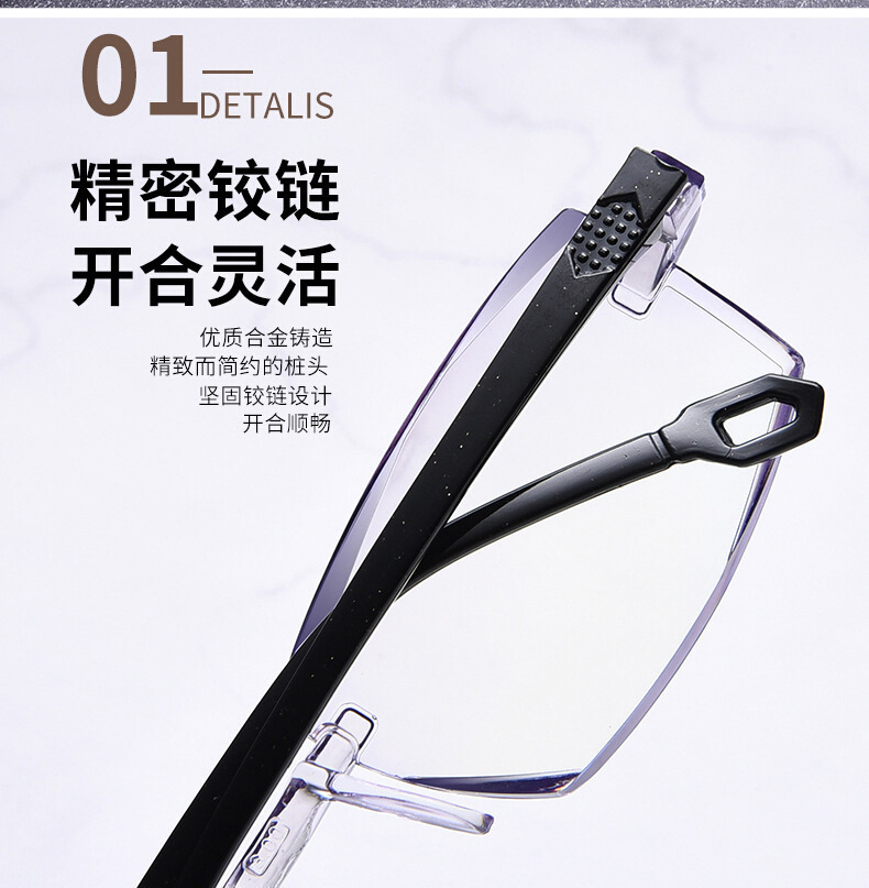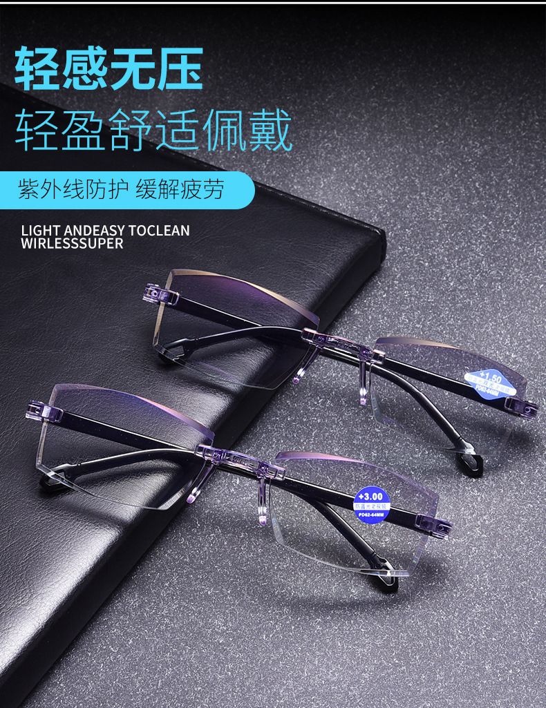 新款无框切边防蓝光老花镜智能变焦高清老视镜中老年人阅读眼镜