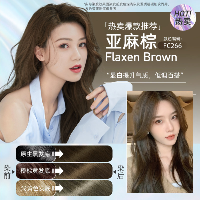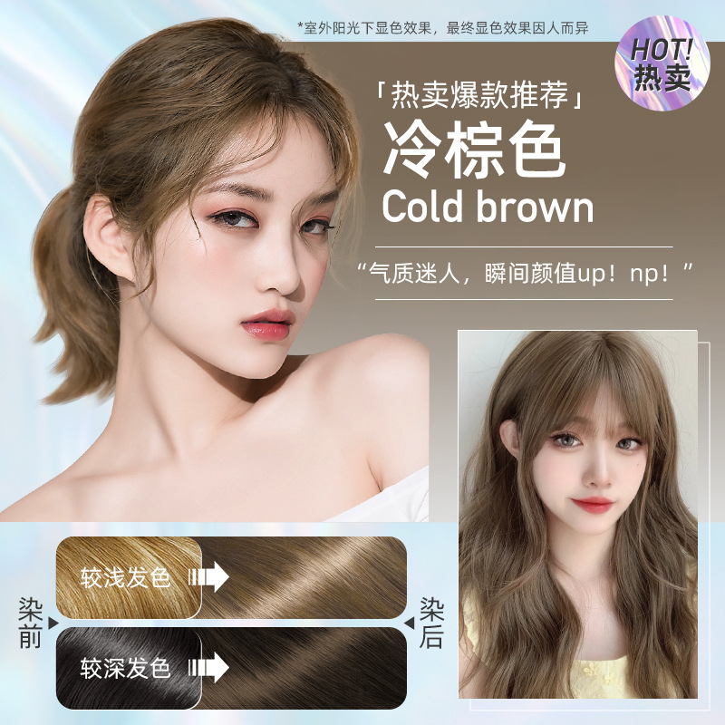 天然温和无刺激植物染发剂流行色显白黑茶女盖白发染发膏现货批发