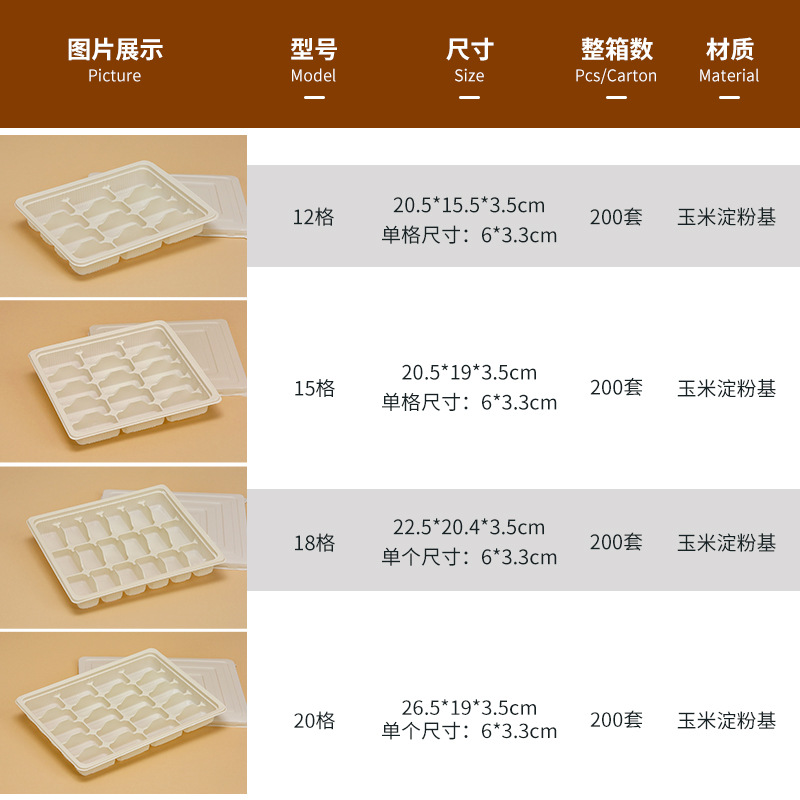 可降解一次性餐盒玉米淀粉餐具饺子打包盒外卖专用水饺盒带盖20格