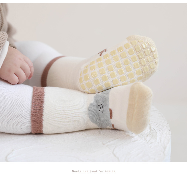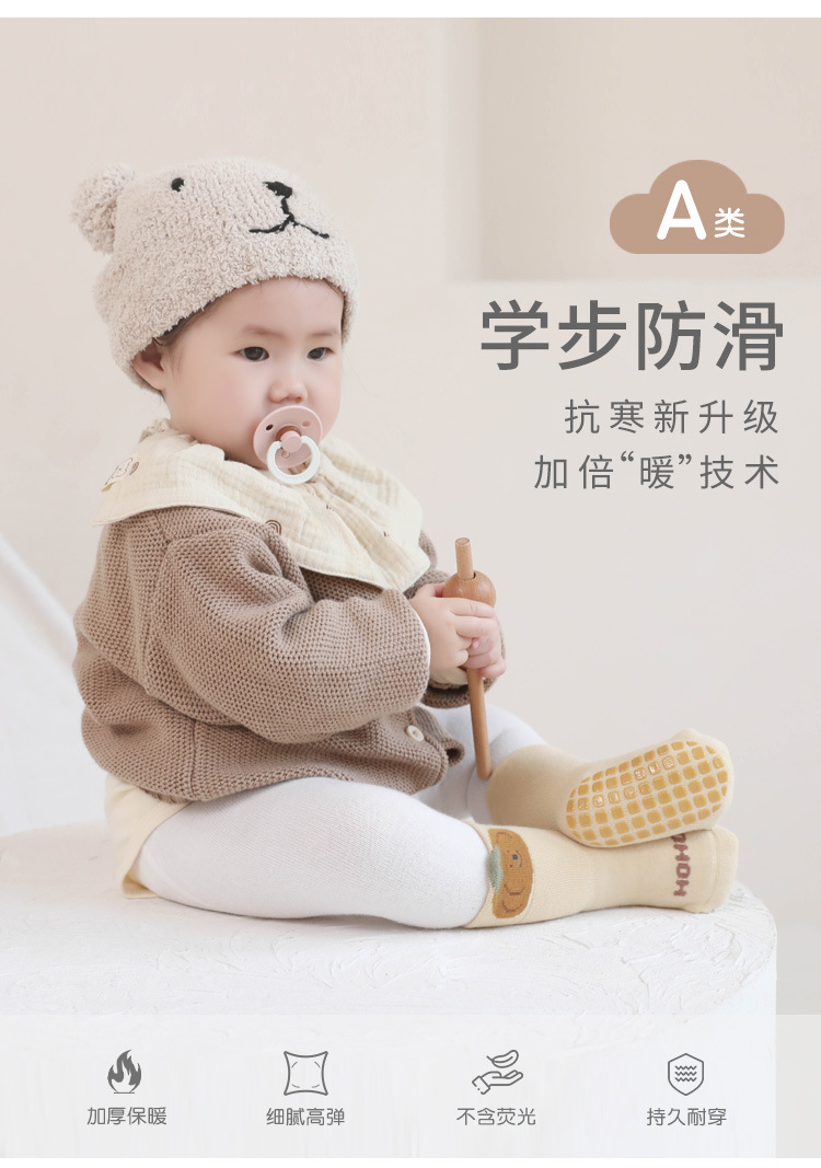 2023冬季新品宝宝地板袜松口无骨胶底防滑男童女童婴儿学步中筒袜