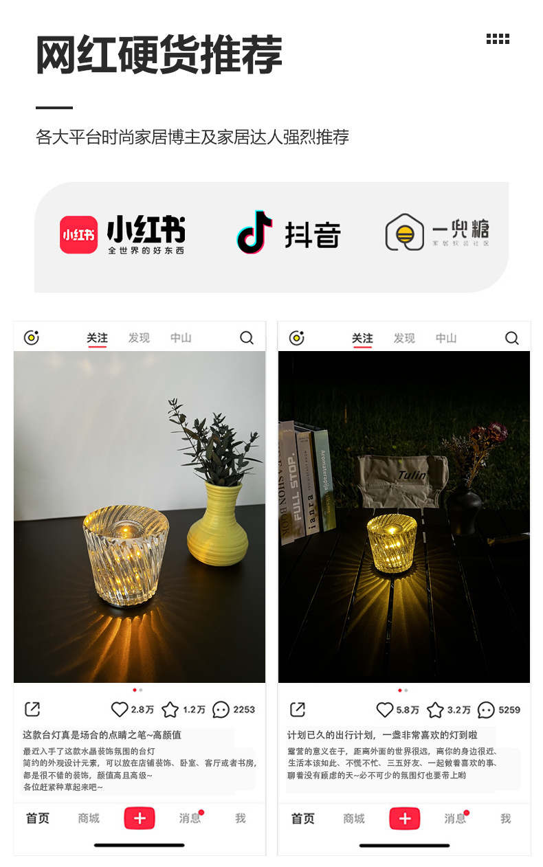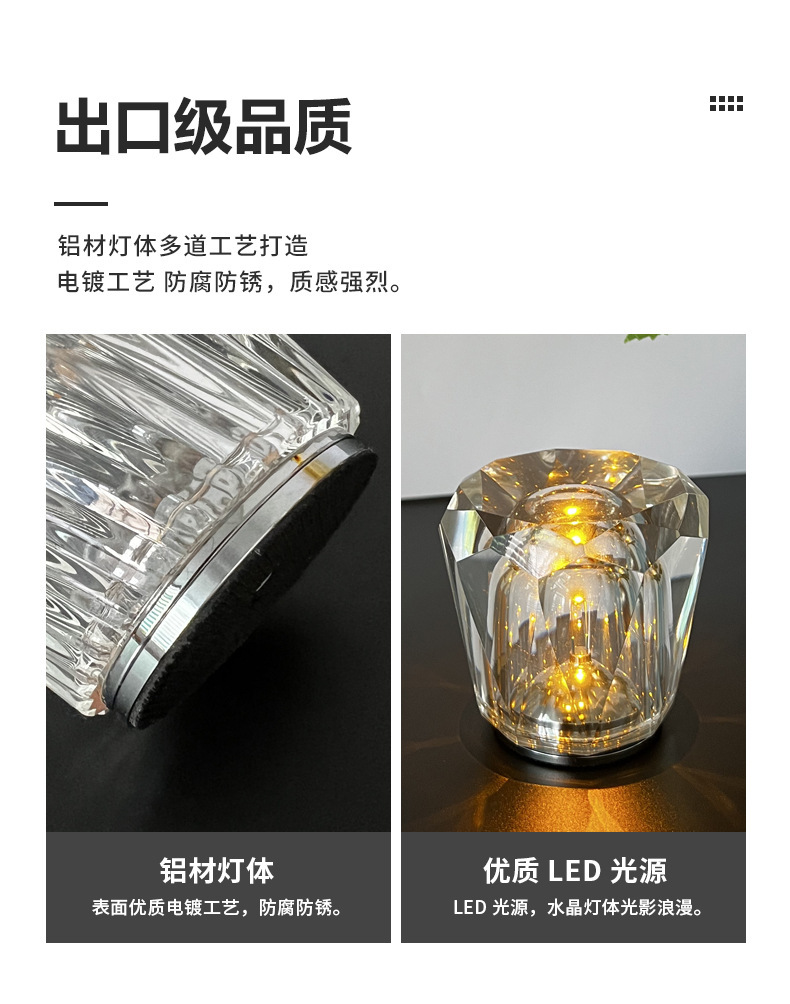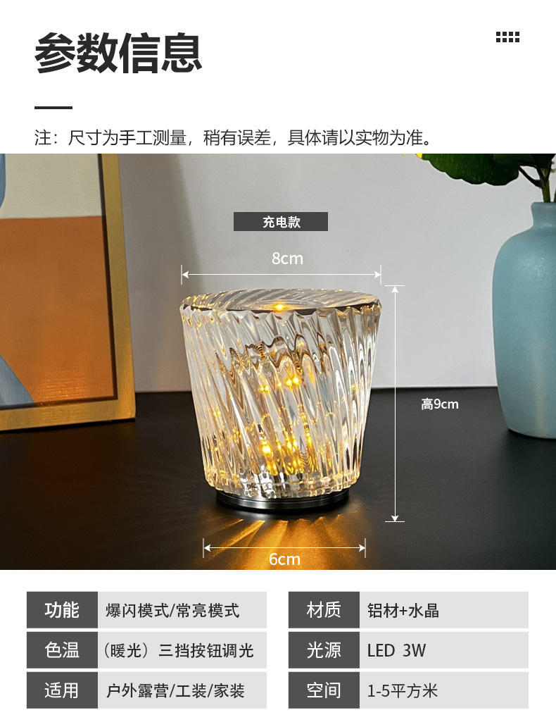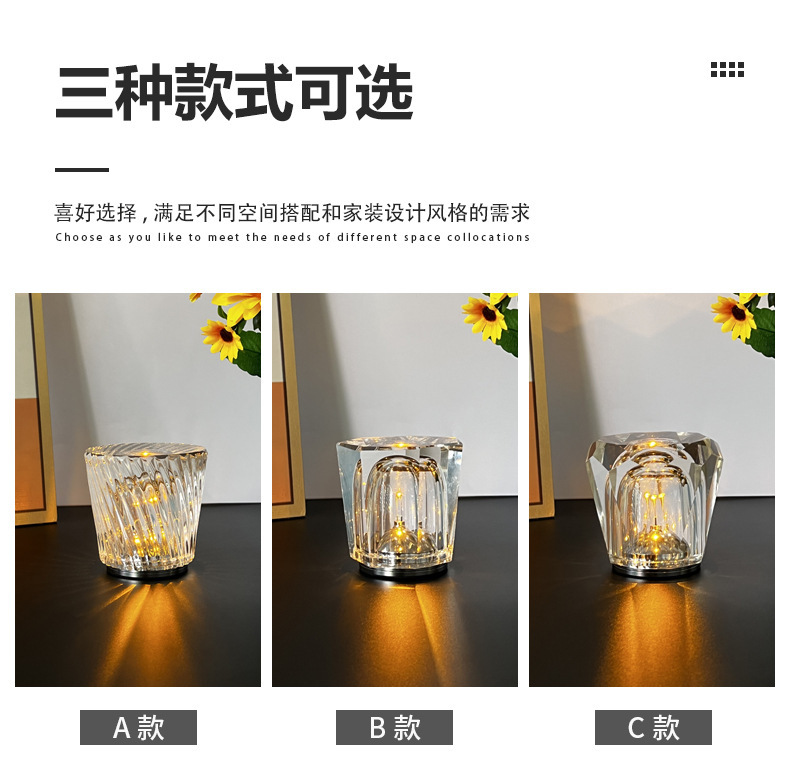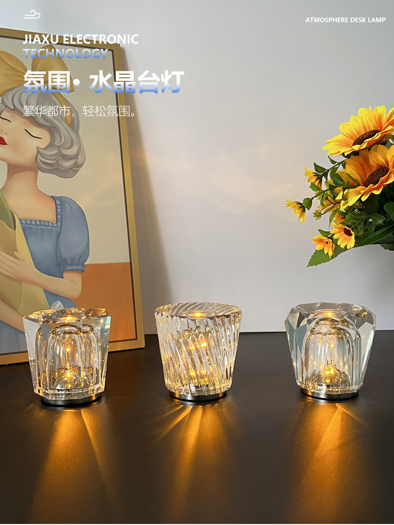 外贸专供北欧水晶台灯酒吧餐厅床头usb无线充电led触摸型氛围台灯