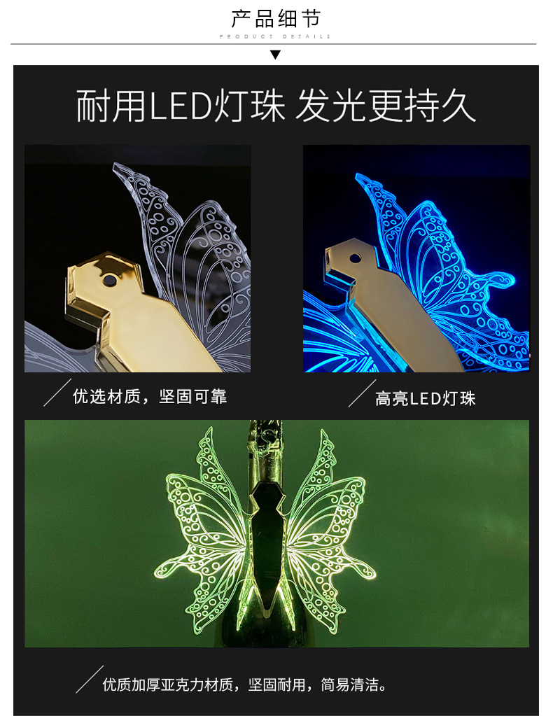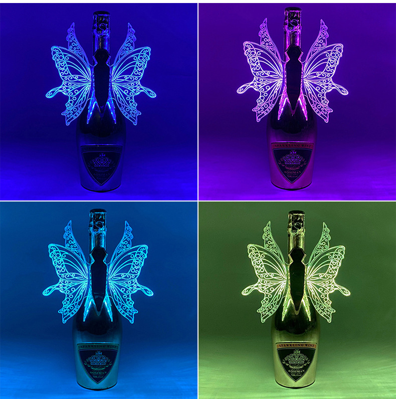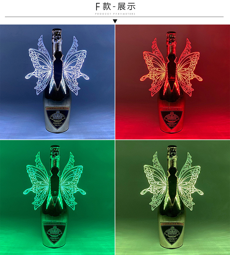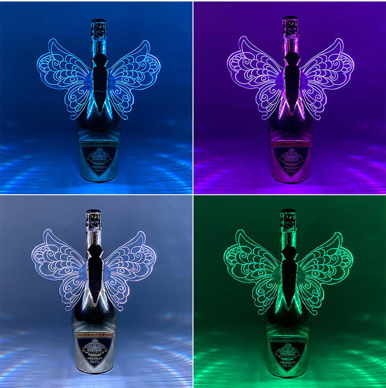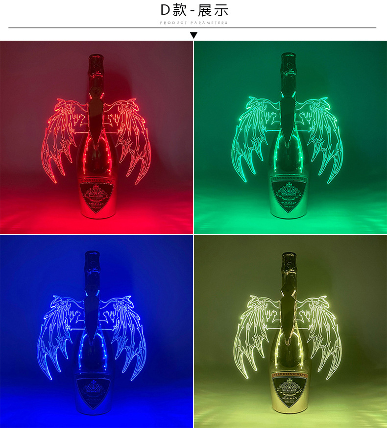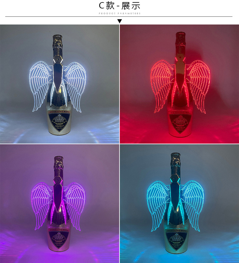 酒吧LED发光天使翅膀爆闪棒七彩光ktv气氛道具香槟头亚克力小夜灯