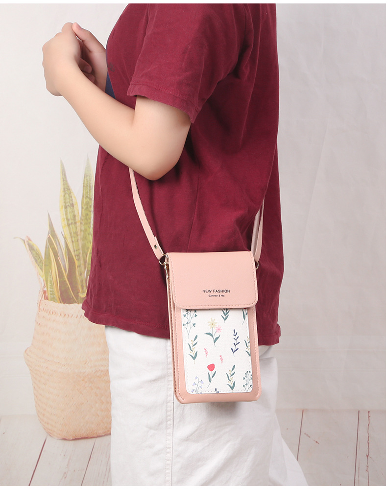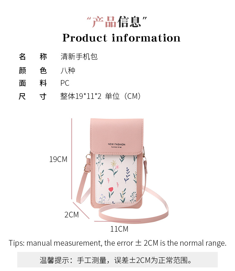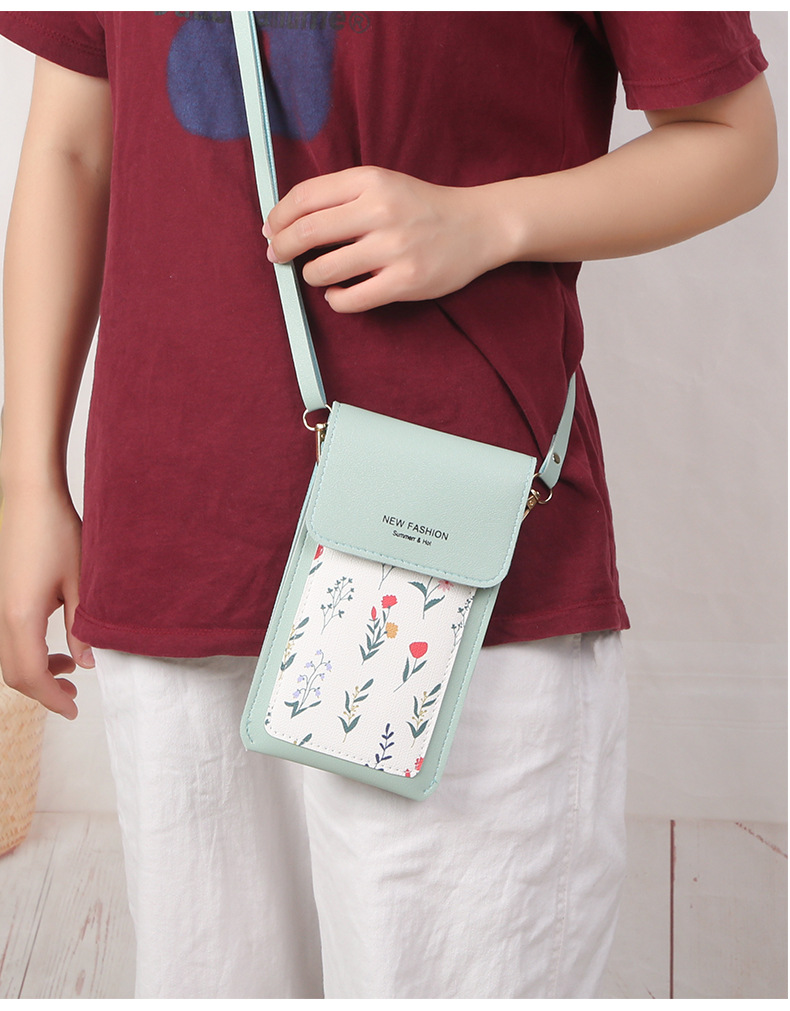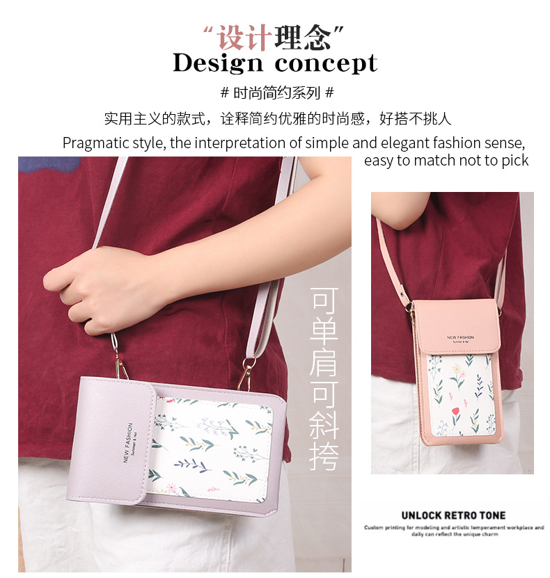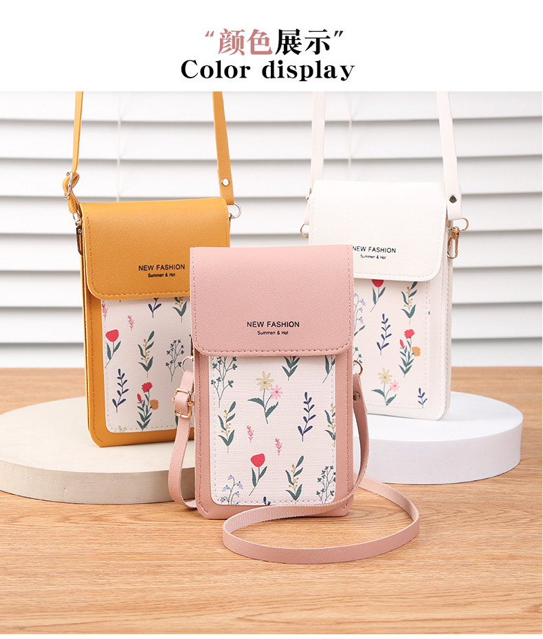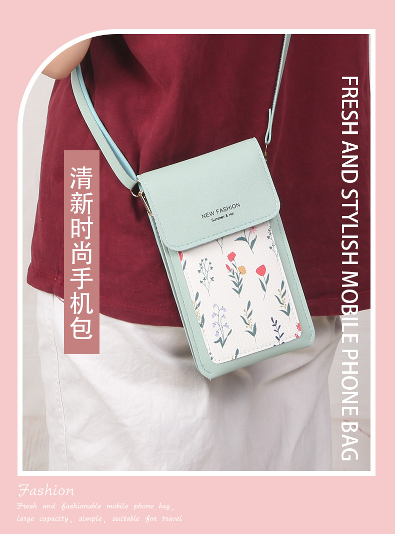 2023新款可触屏手机包女生单肩斜挎小包小巧迷你印花女背包充电孔