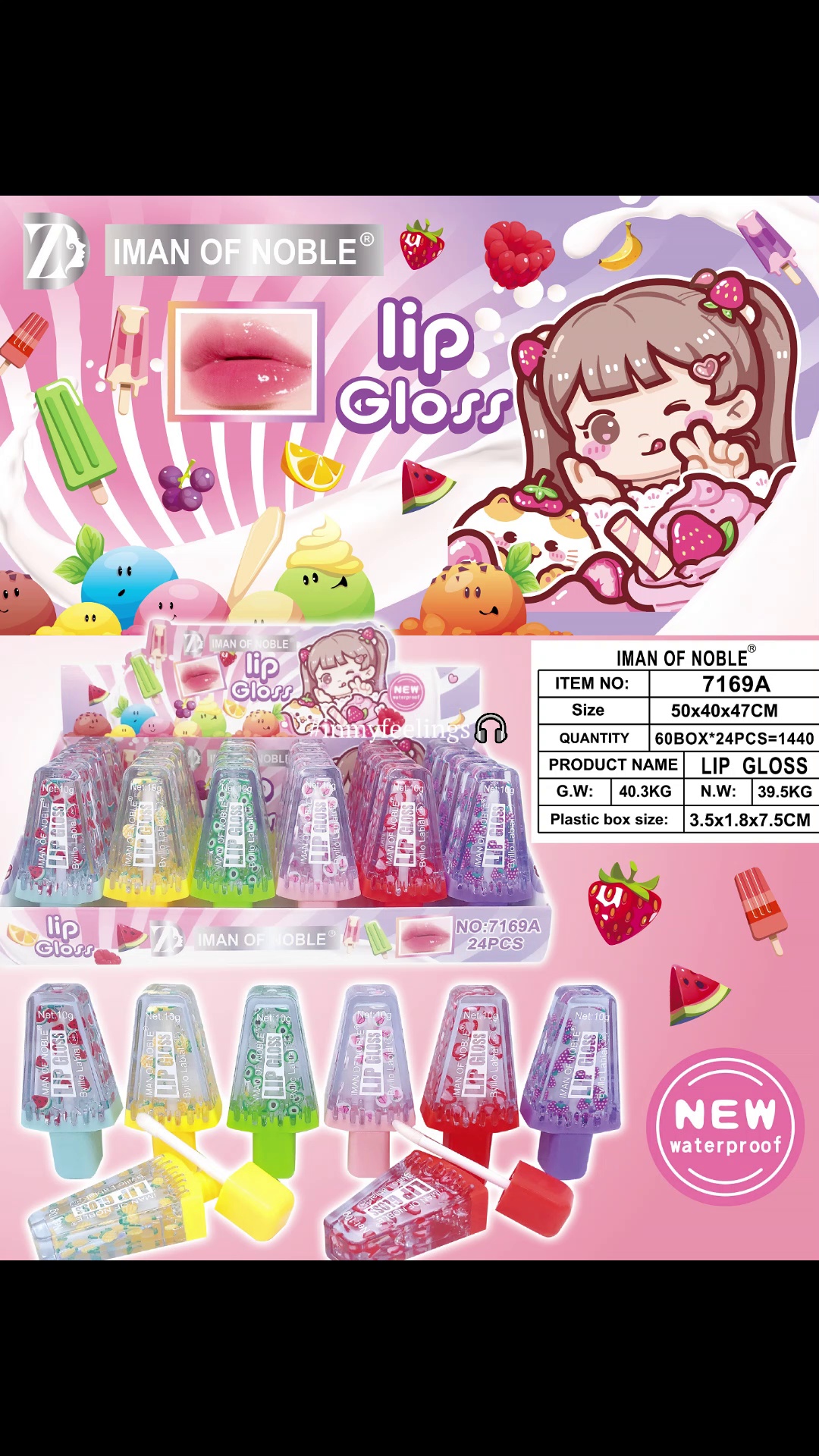 IMAN OFNOBLE新款卡通西瓜六色清透水果片唇油滋润唇蜜去死皮保湿