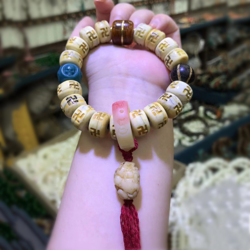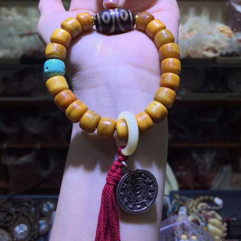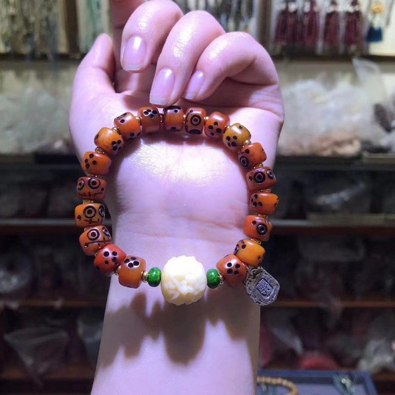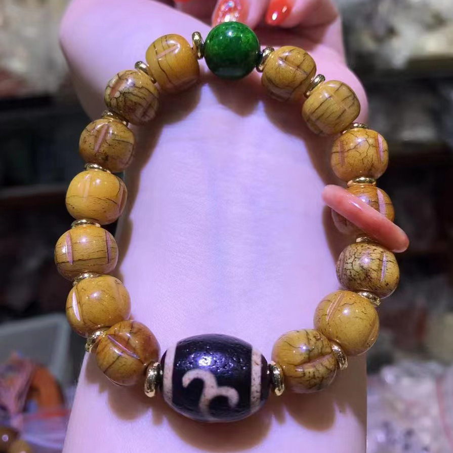 蓬森直播供货批发西藏牦牛骨手编手串财神天珠天铁大鹏鸟手链饰品