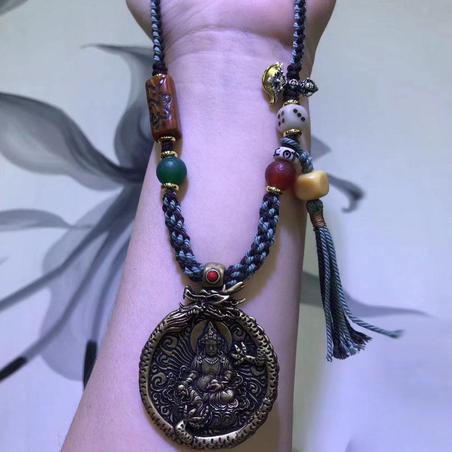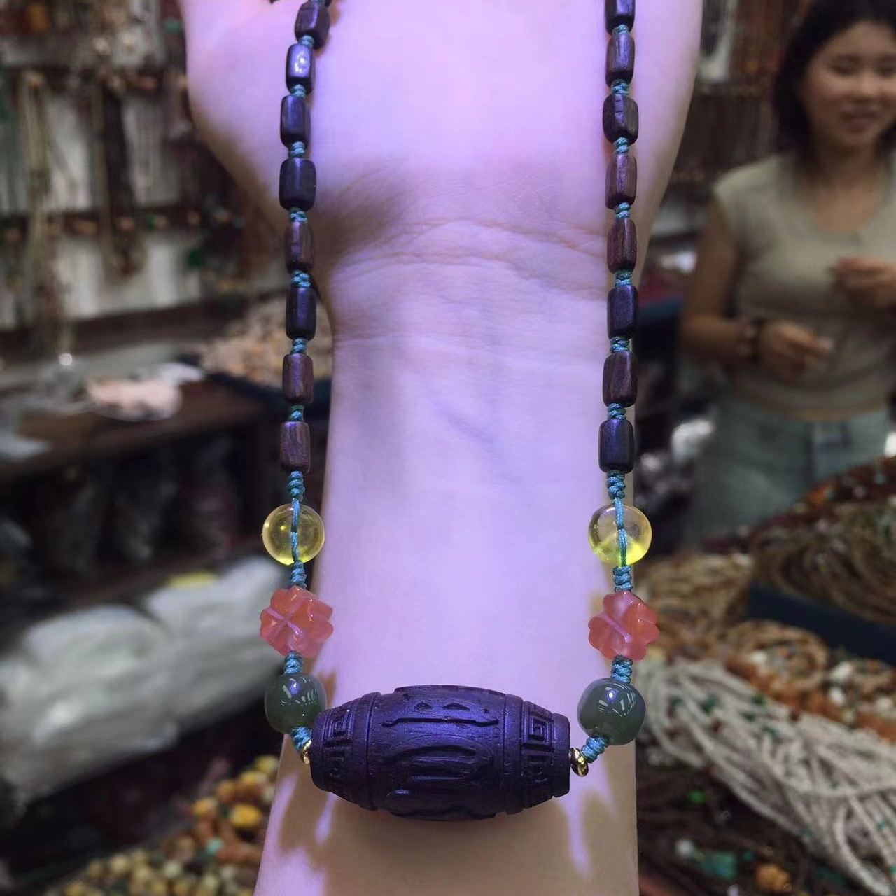 沉香木九尾狐扎基拉姆绿度母唐卡项链女百搭复古项饰民族饰品批发