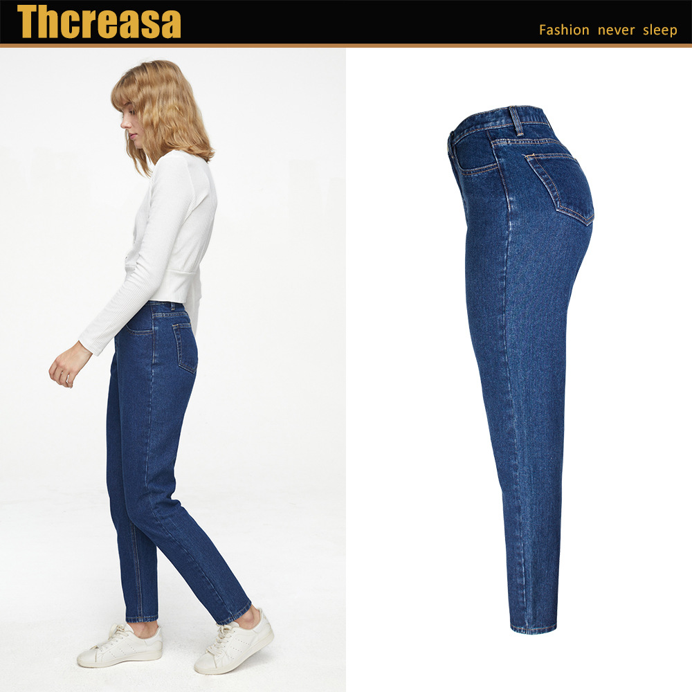 2025wish速卖通欧美女士牛仔裤深蓝高腰牛仔长裤女装宽松休闲裤