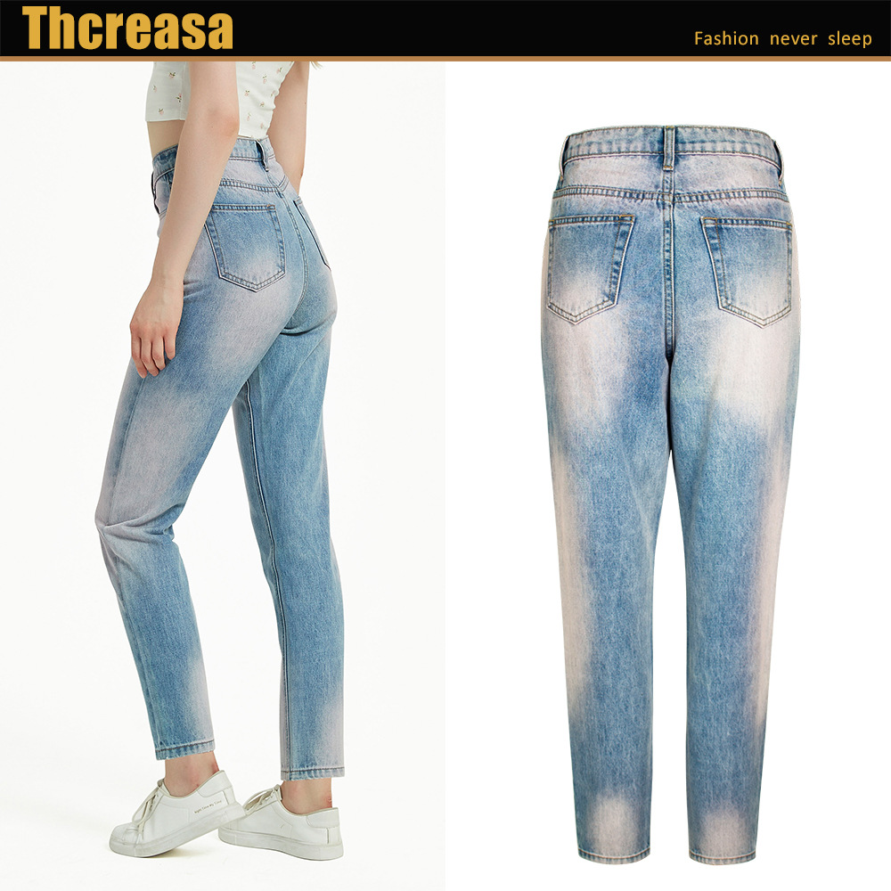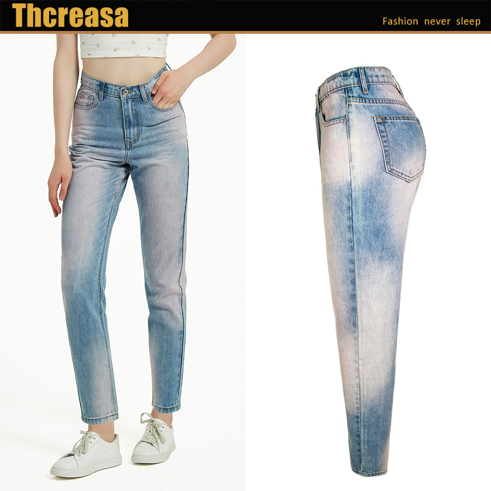 欧美女装高腰休闲男友牛仔裤女夏季新款着色少女感粉色跨境女