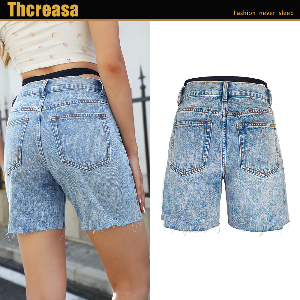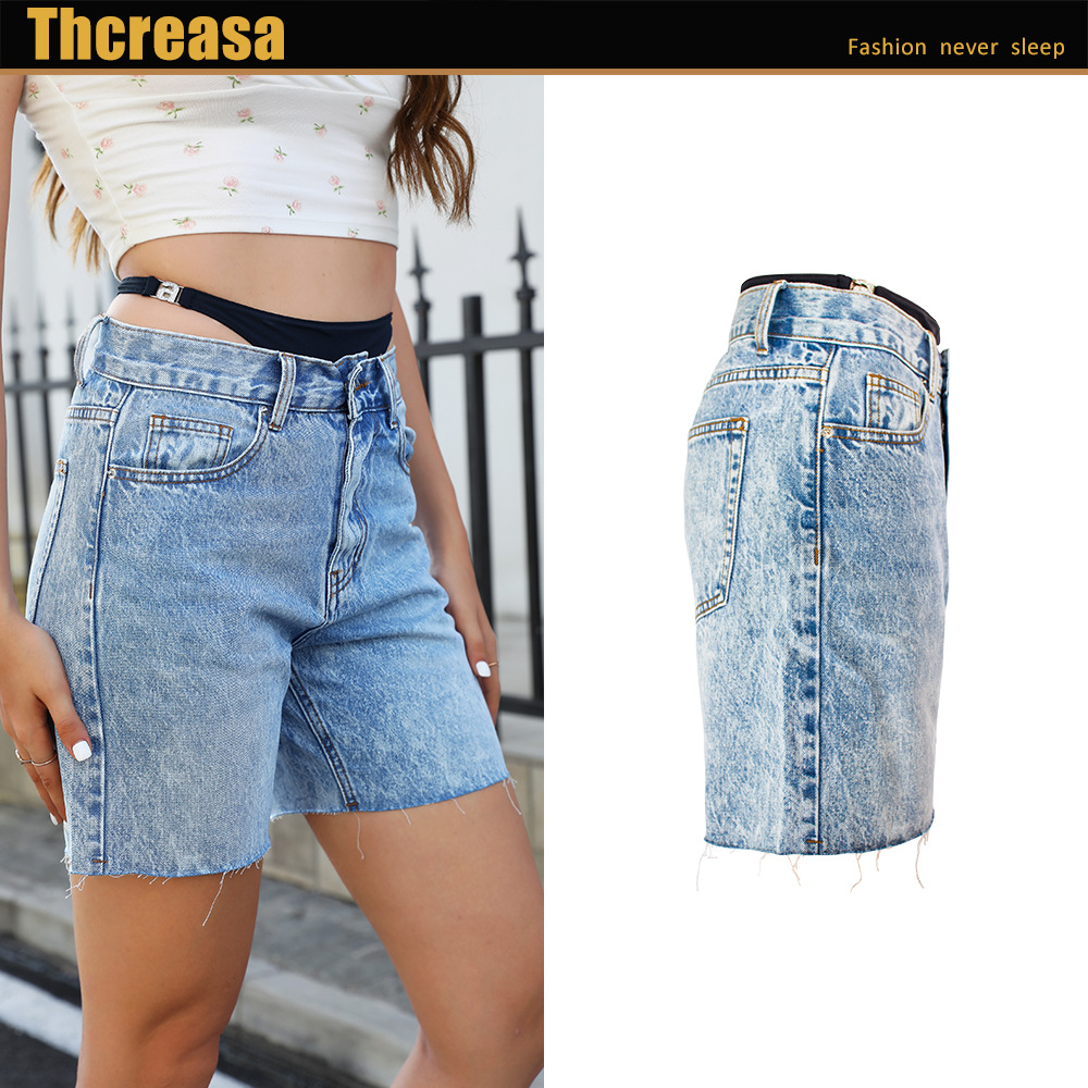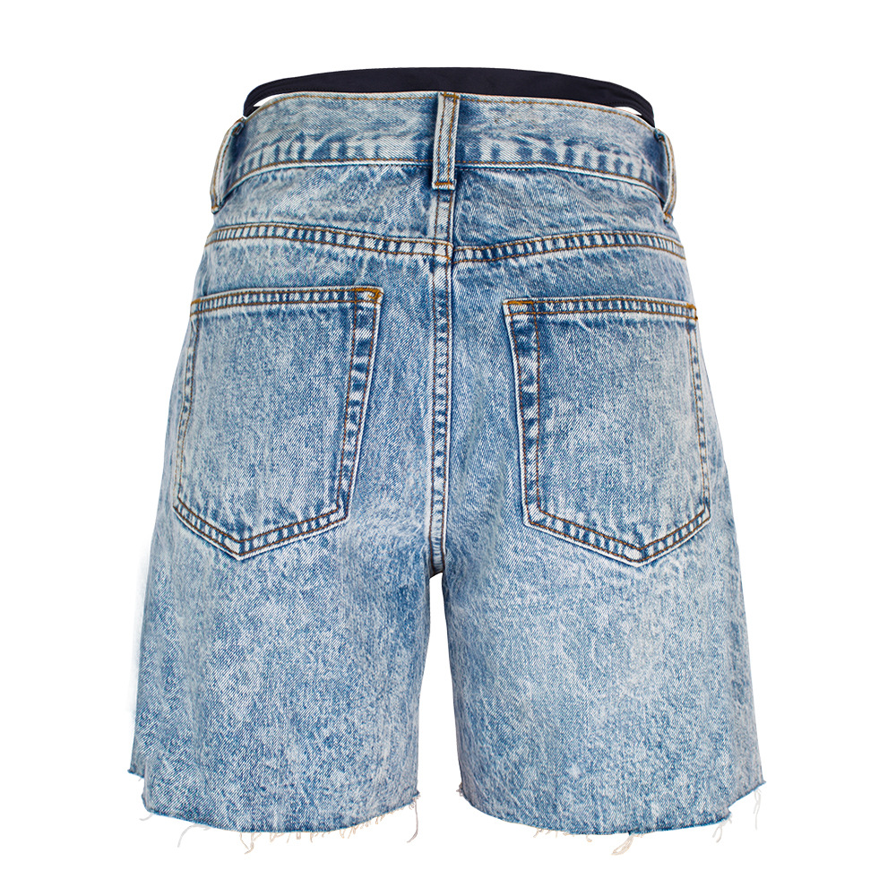 春夏款假两件拼接比基尼高腰直筒牛仔短裤水洗简约直筒牛仔短裤