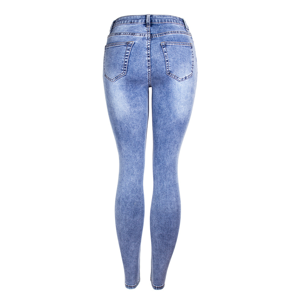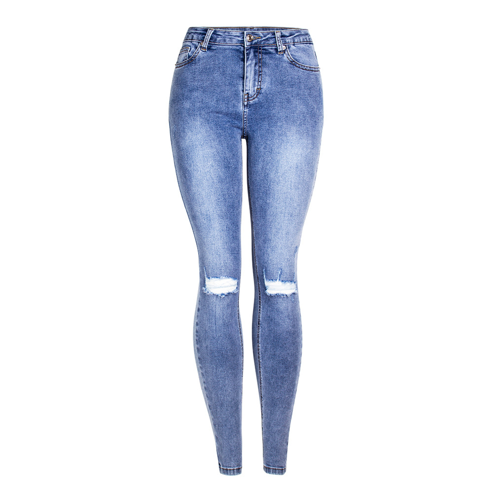 亚马逊女装欧美牛仔长裤女式破洞修身弹力小脚裤铅笔裤