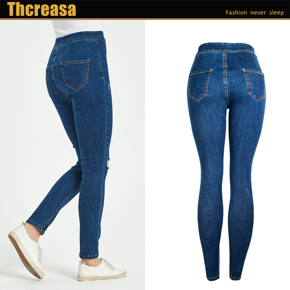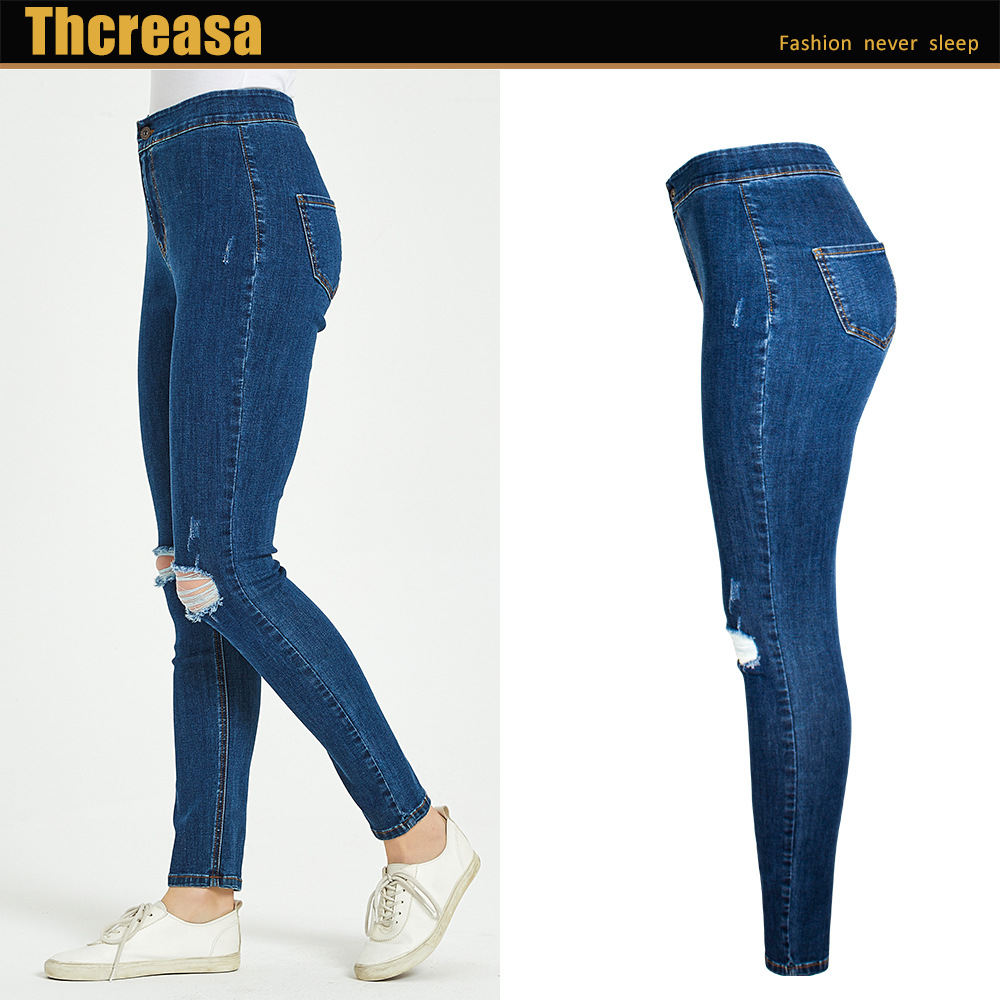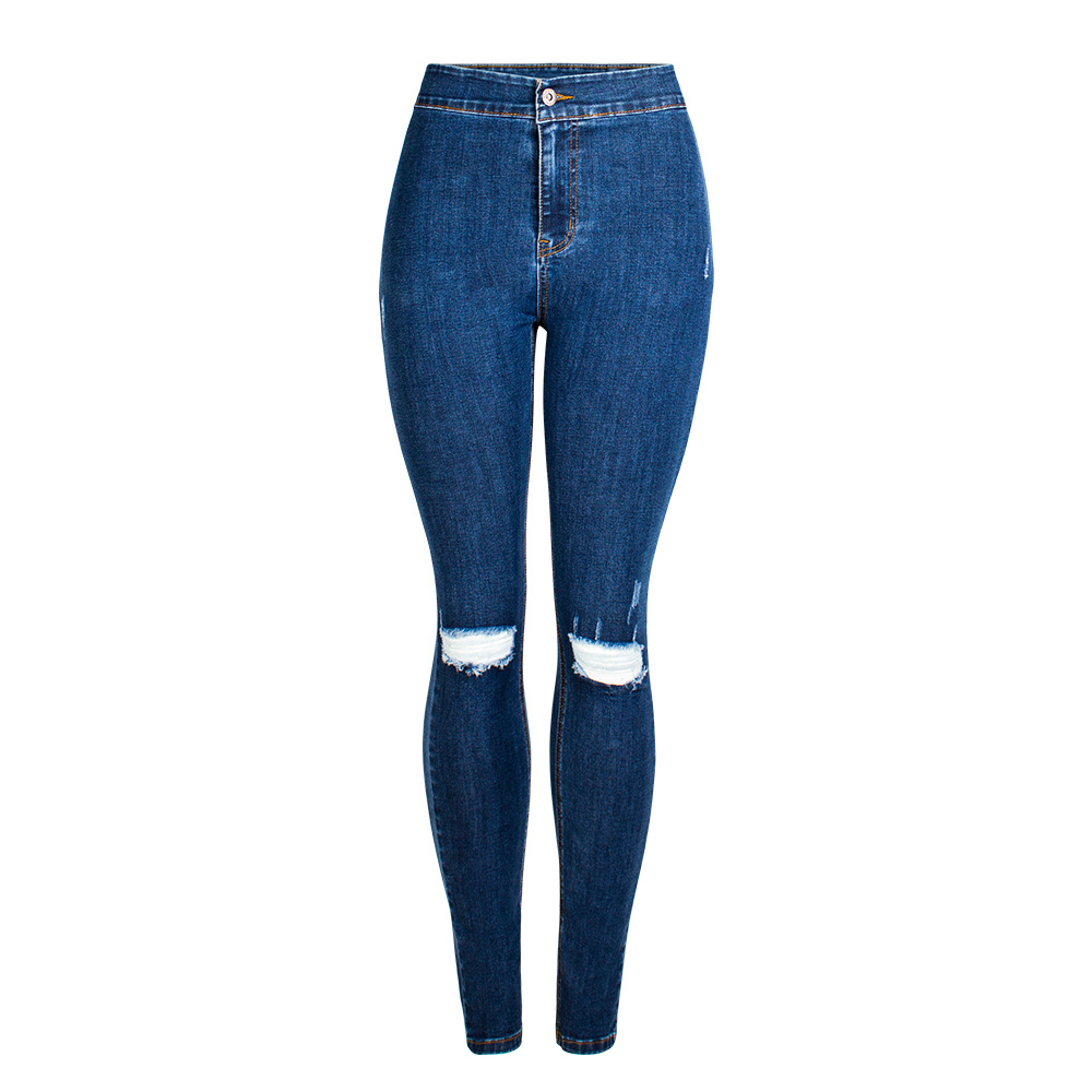 亚马逊女装新款欧美铅笔裤弹力修身破洞显瘦休闲小脚裤