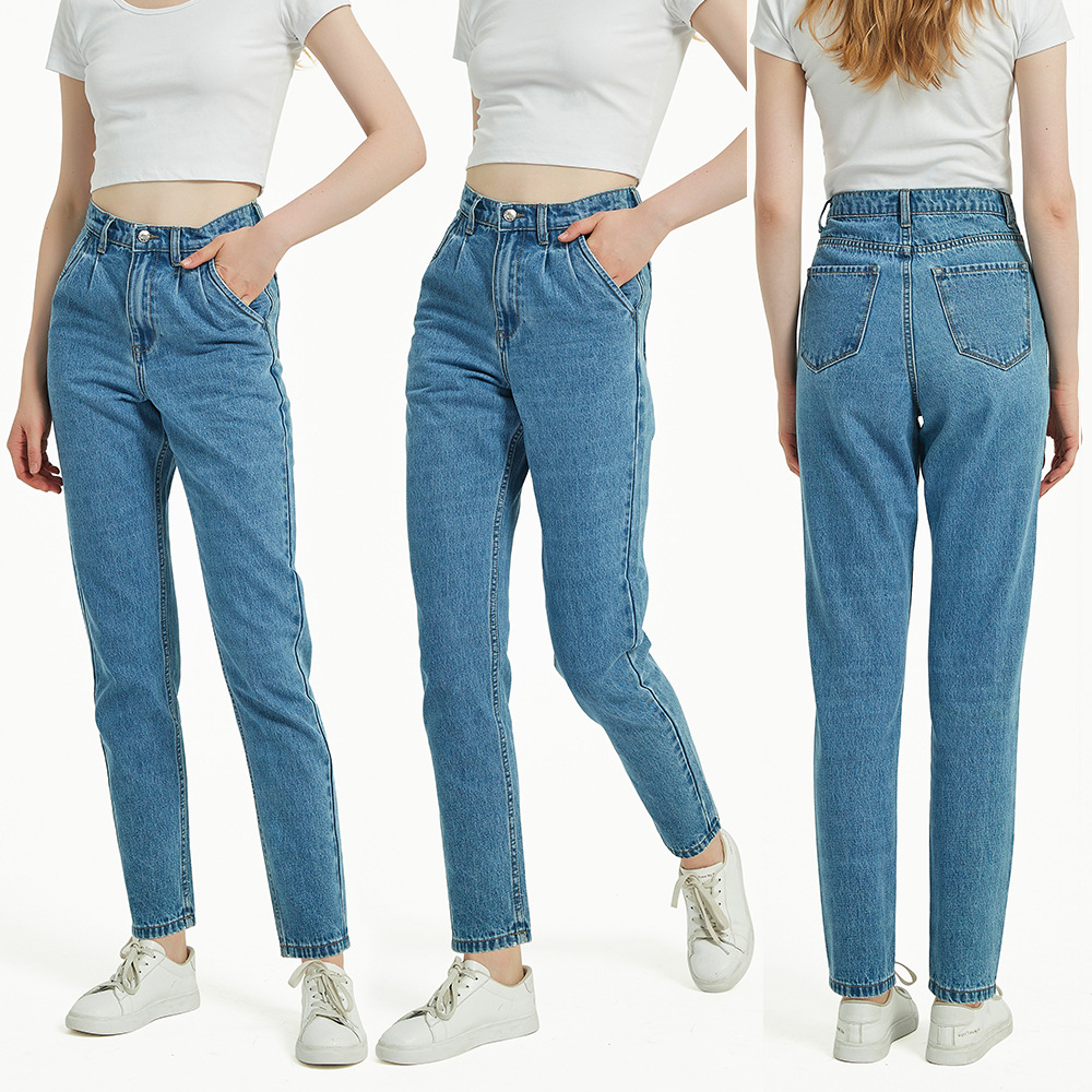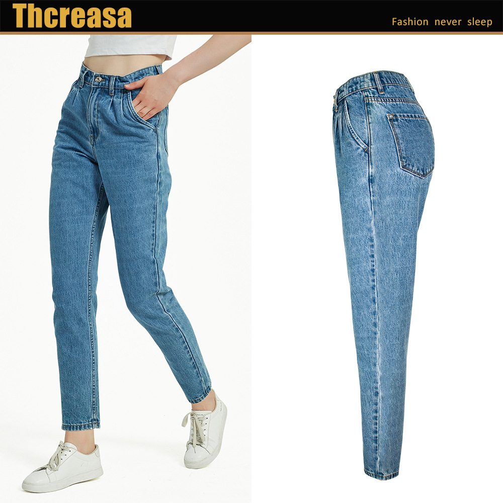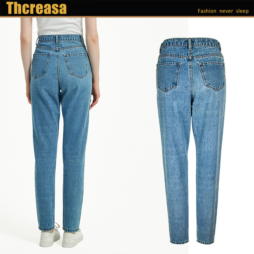 2021欧美女装新款高腰修身直筒水洗牛仔长裤街头小脚跨境女装