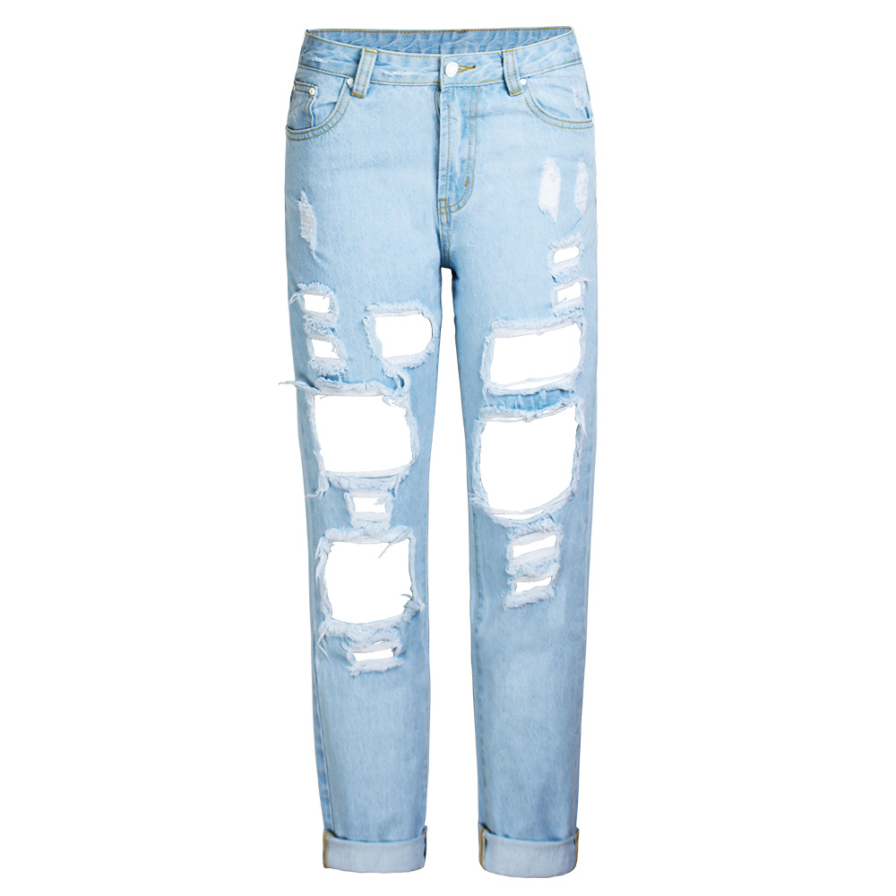速卖通ebay欧美女装破洞牛仔宽松直简裤BF九分裤货源
