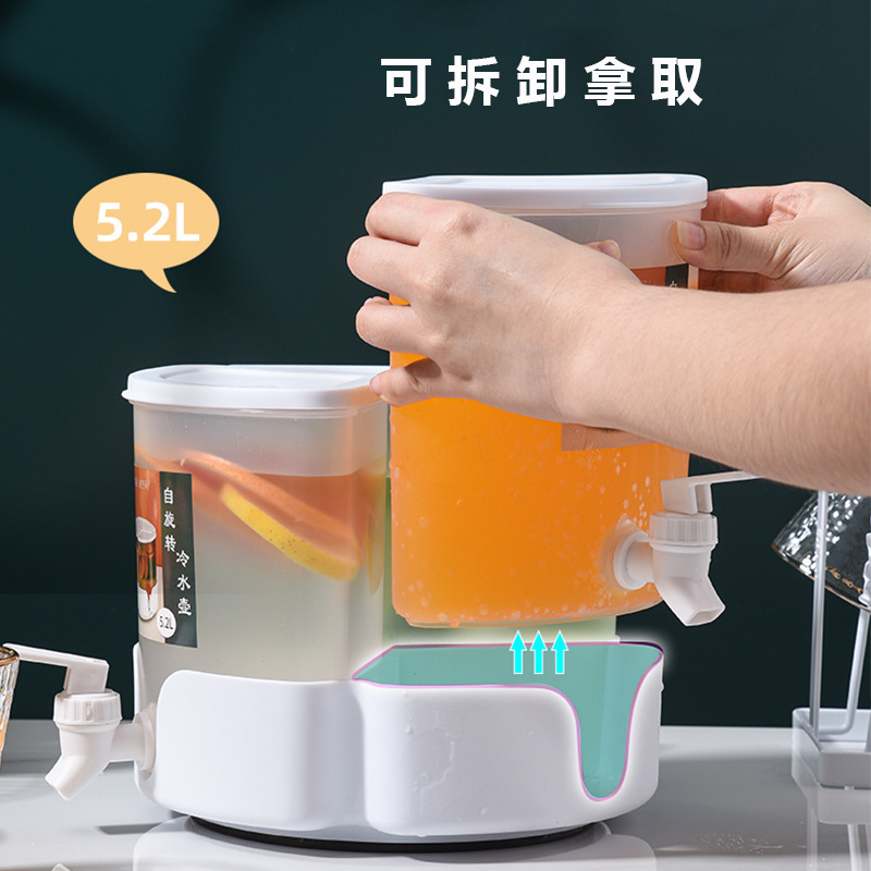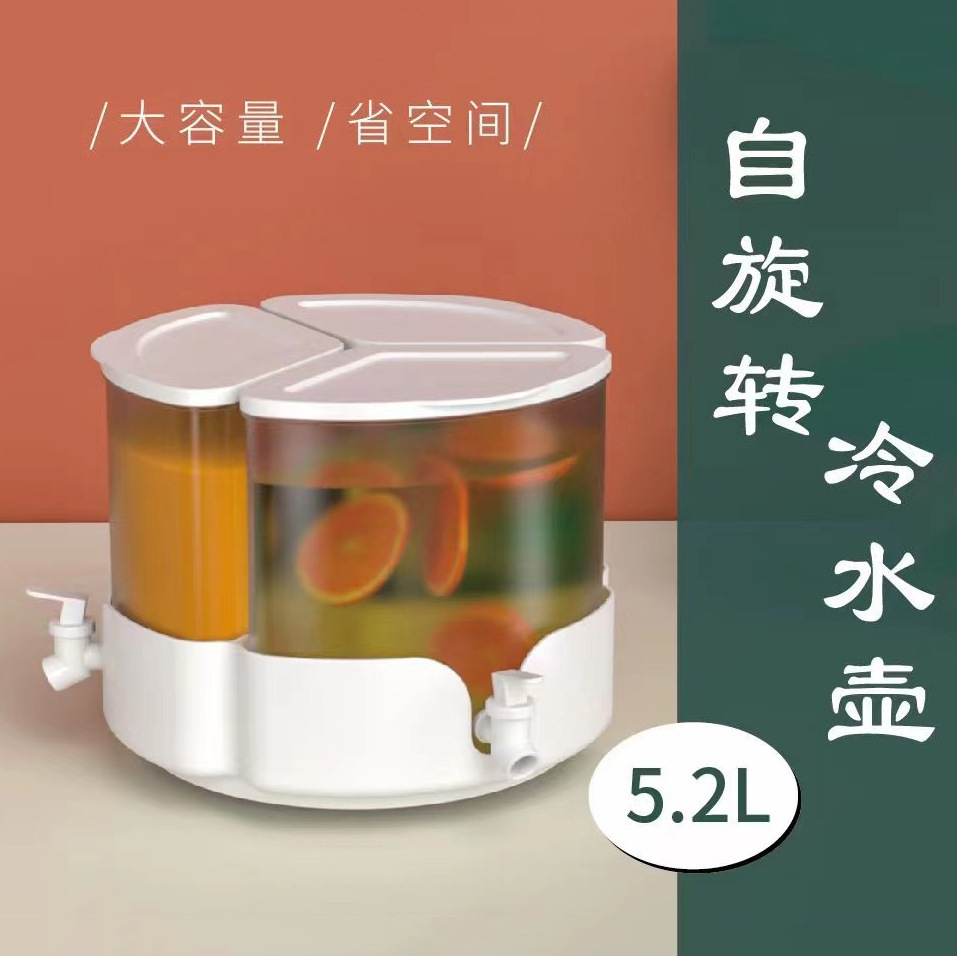 凉水壶带龙头 冰箱大容量水果茶壶批发三格冷水桶5.2L 旋转冷水壶