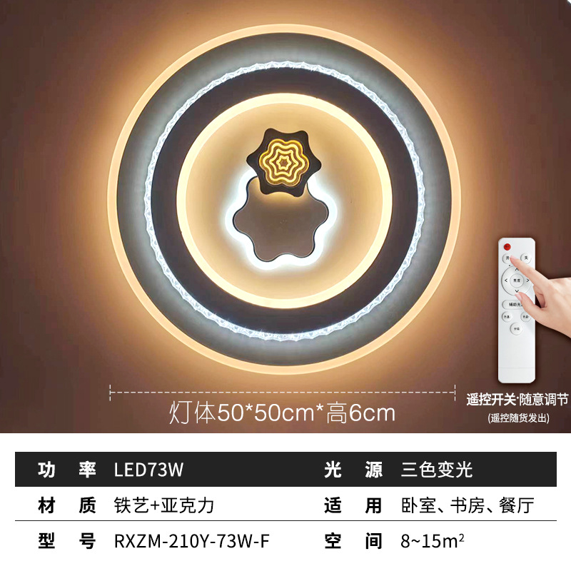外贸专供2023LED圆形吸顶灯灯简约书房灯具双星三色变光