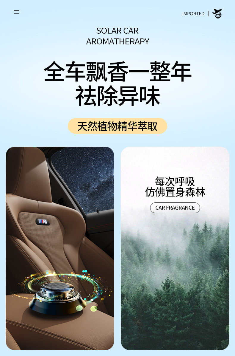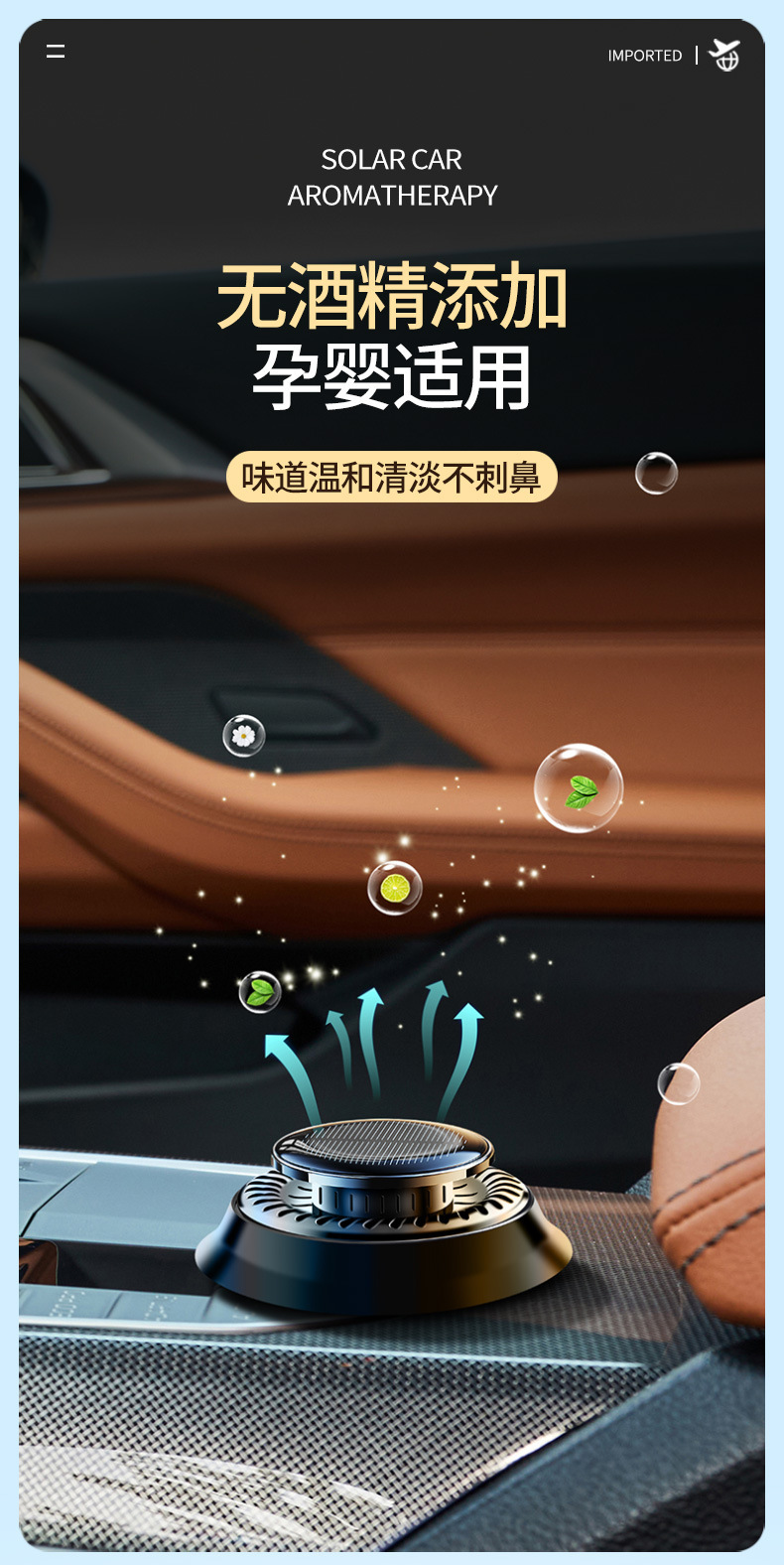 跨境汽车用品太阳能旋转车载香薰中控台汽车摆件持久散香车载香熏