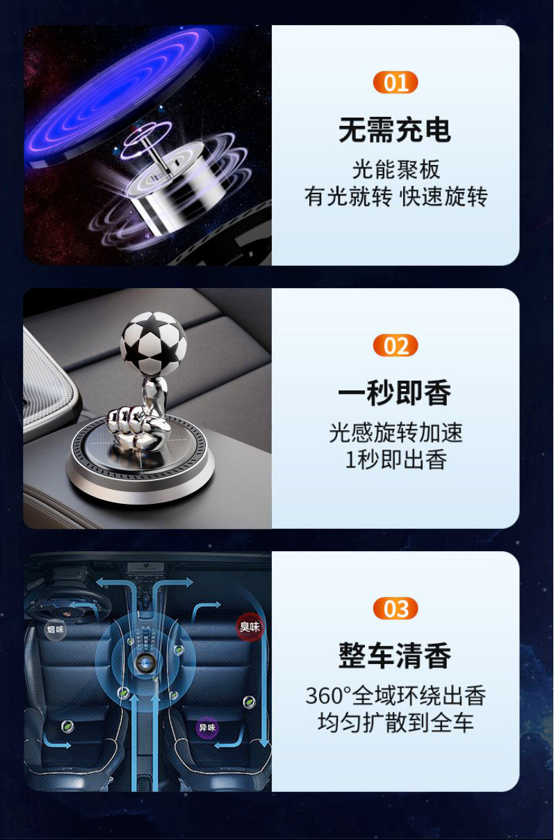 太阳能旋转悬浮足球车载香薰汽车香水摆件车用中控台汽车香薰装饰