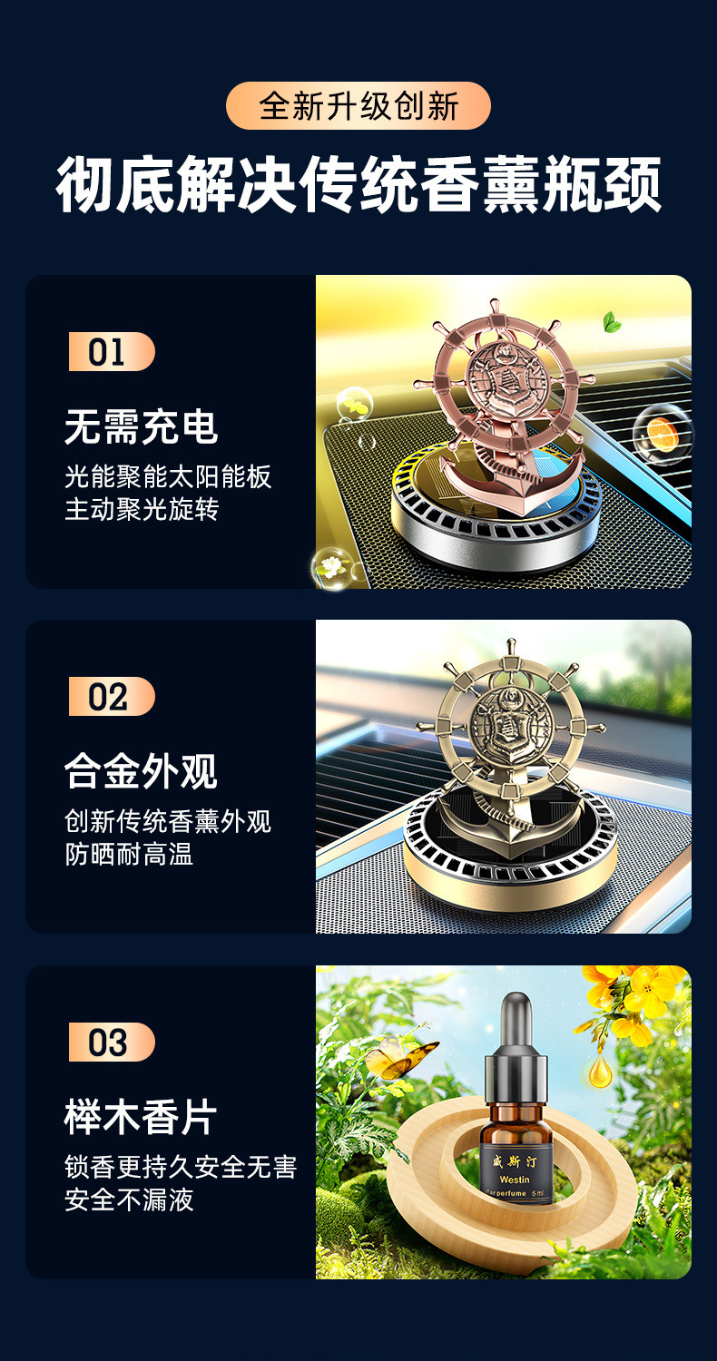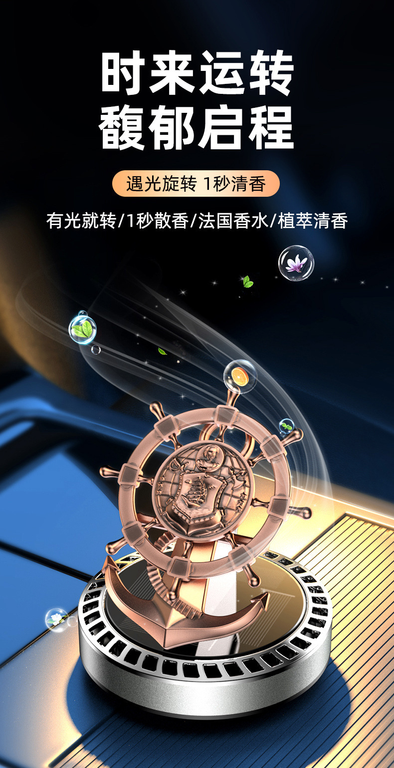 太阳能旋转汽车香水摆件中控台创意船舵汽车香薰车载香薰