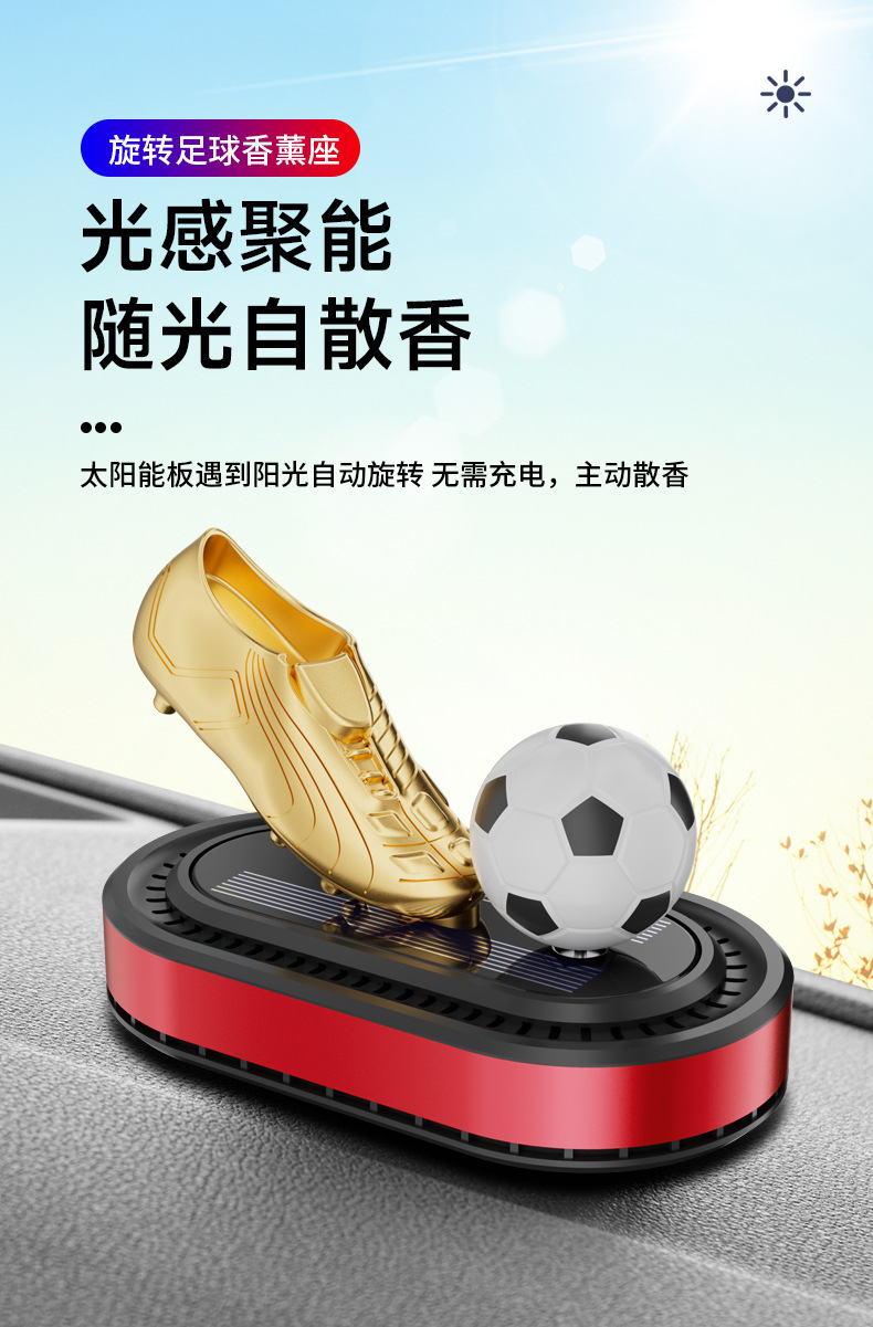 太阳能旋转足球金靴车载香薰中控台汽车摆件持久散香车载香水香熏