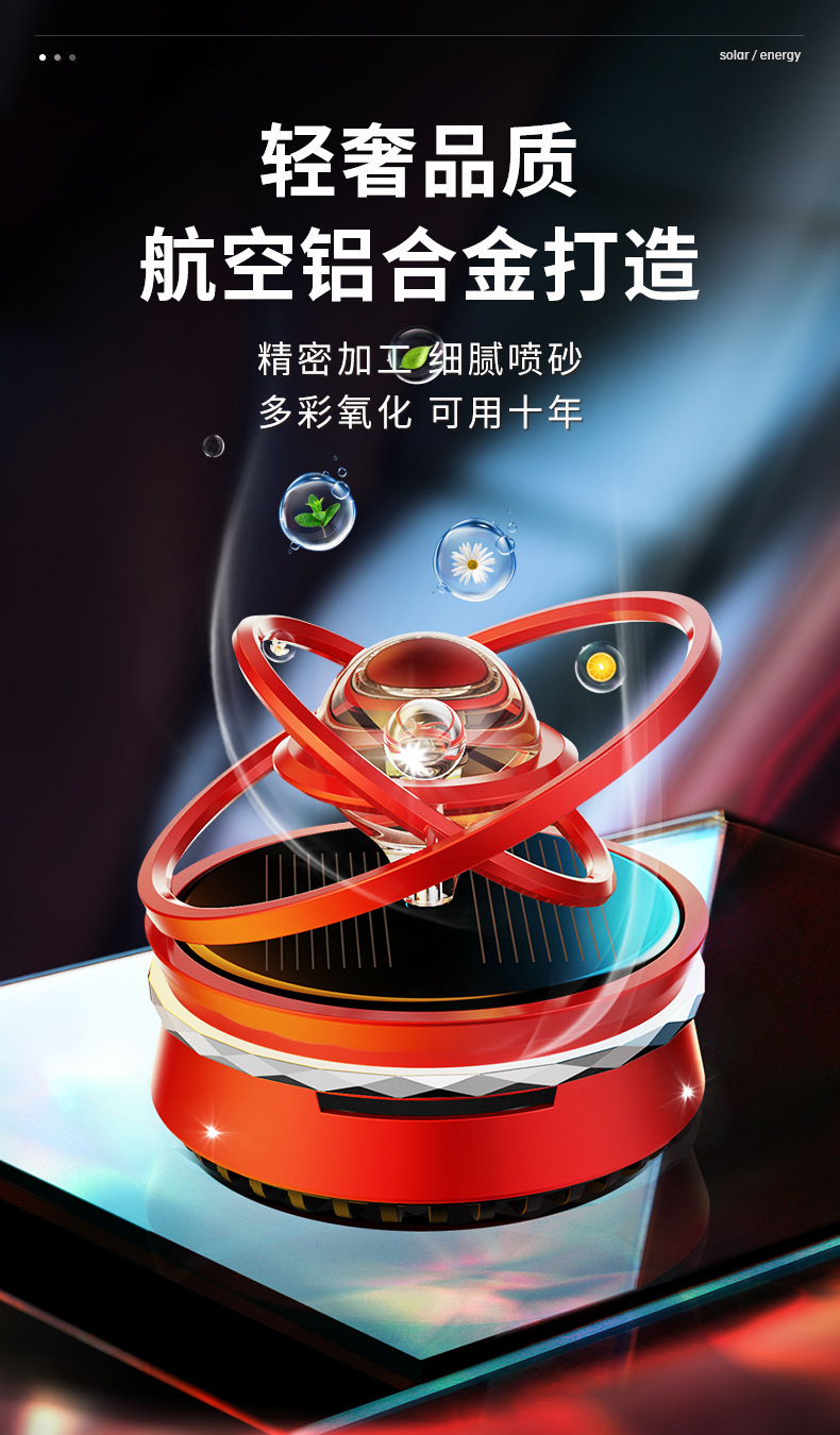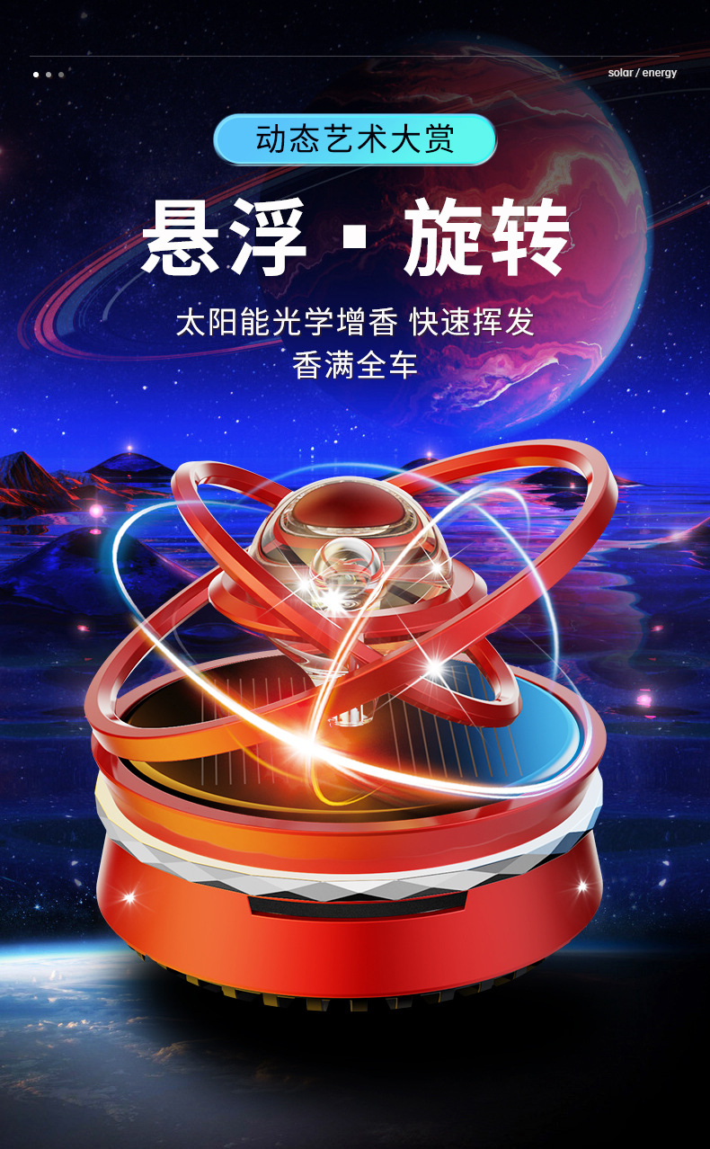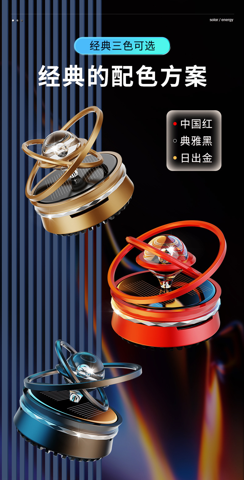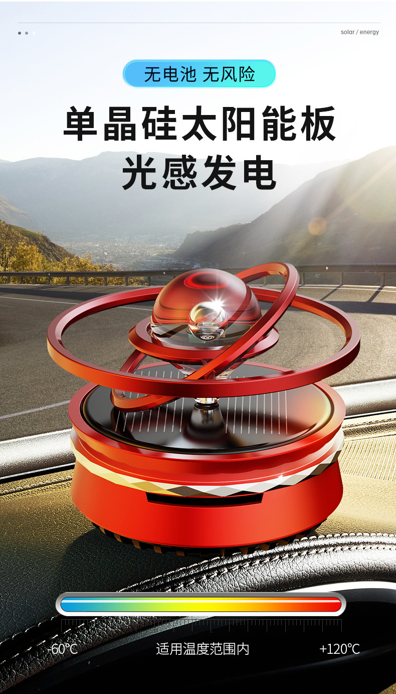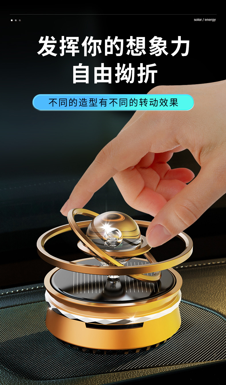 车载内饰摆件汽车创意装饰品香氛太阳能星球旋转香水合金香薰座