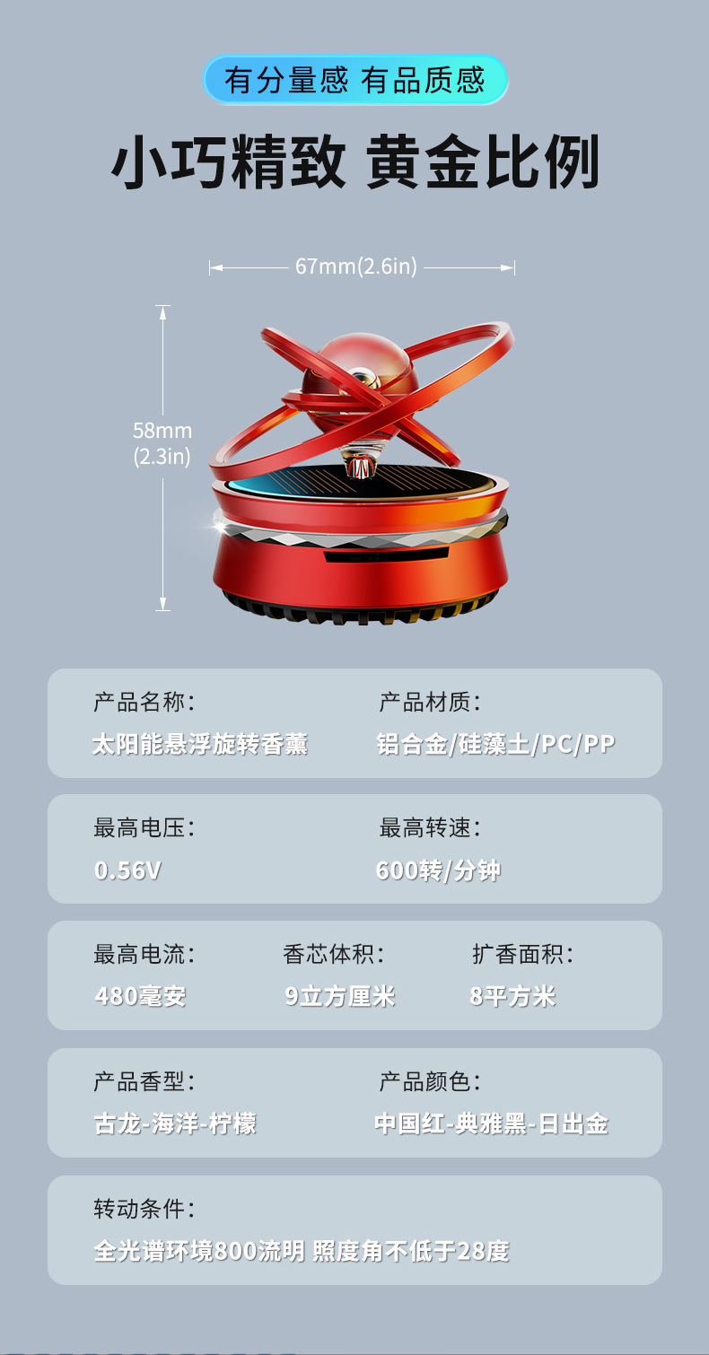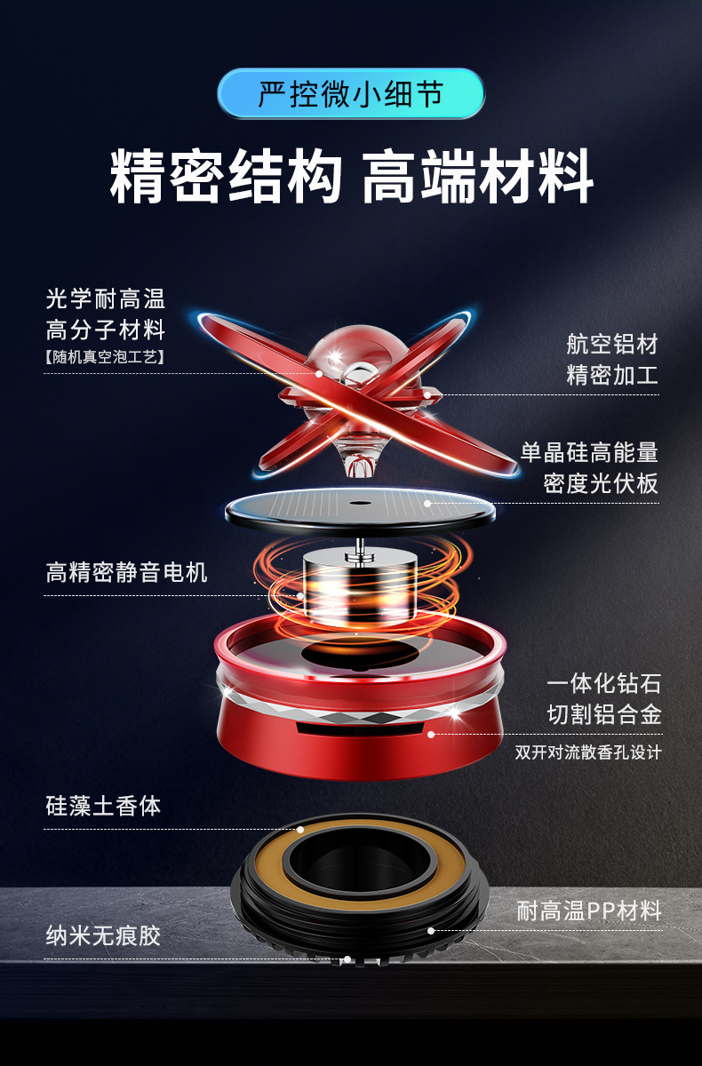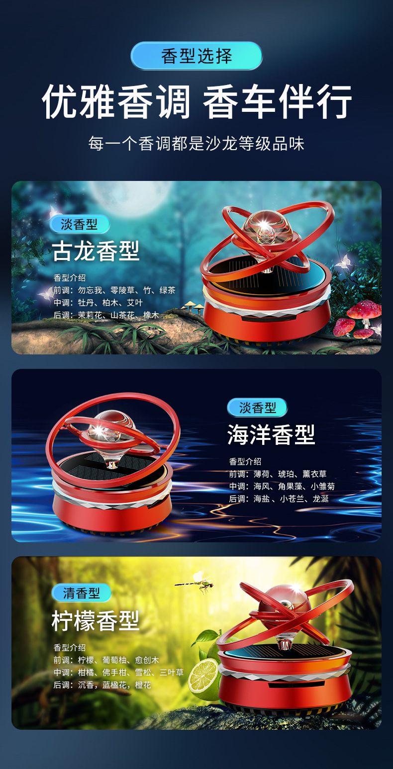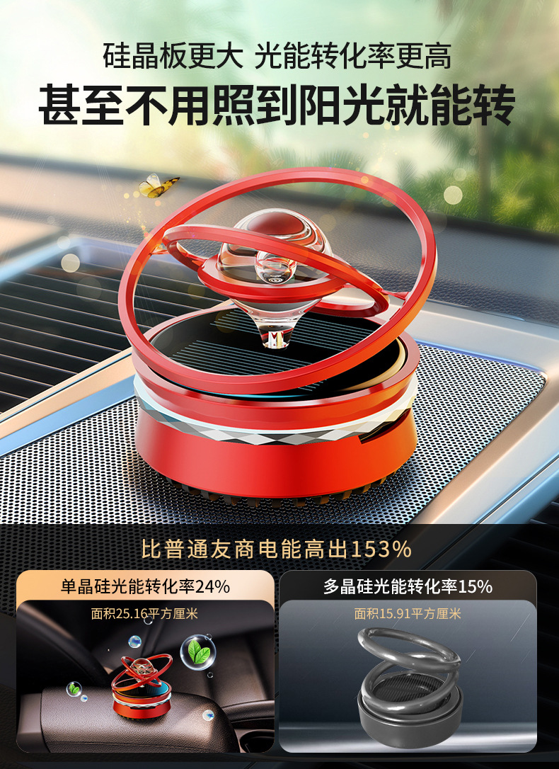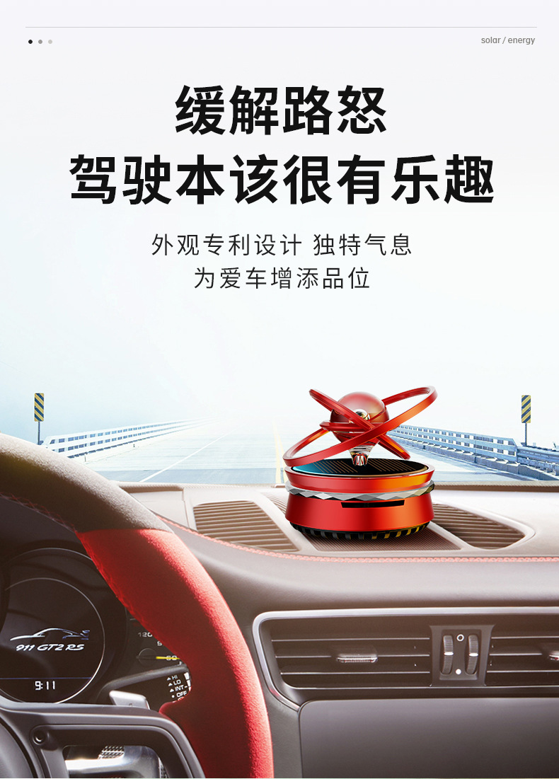 车载内饰摆件汽车创意装饰品香氛太阳能星球旋转香水合金香薰座