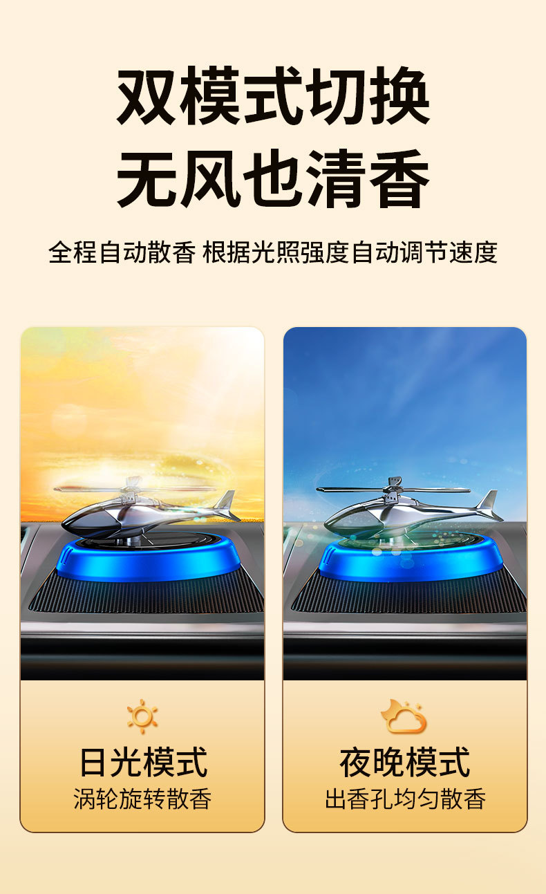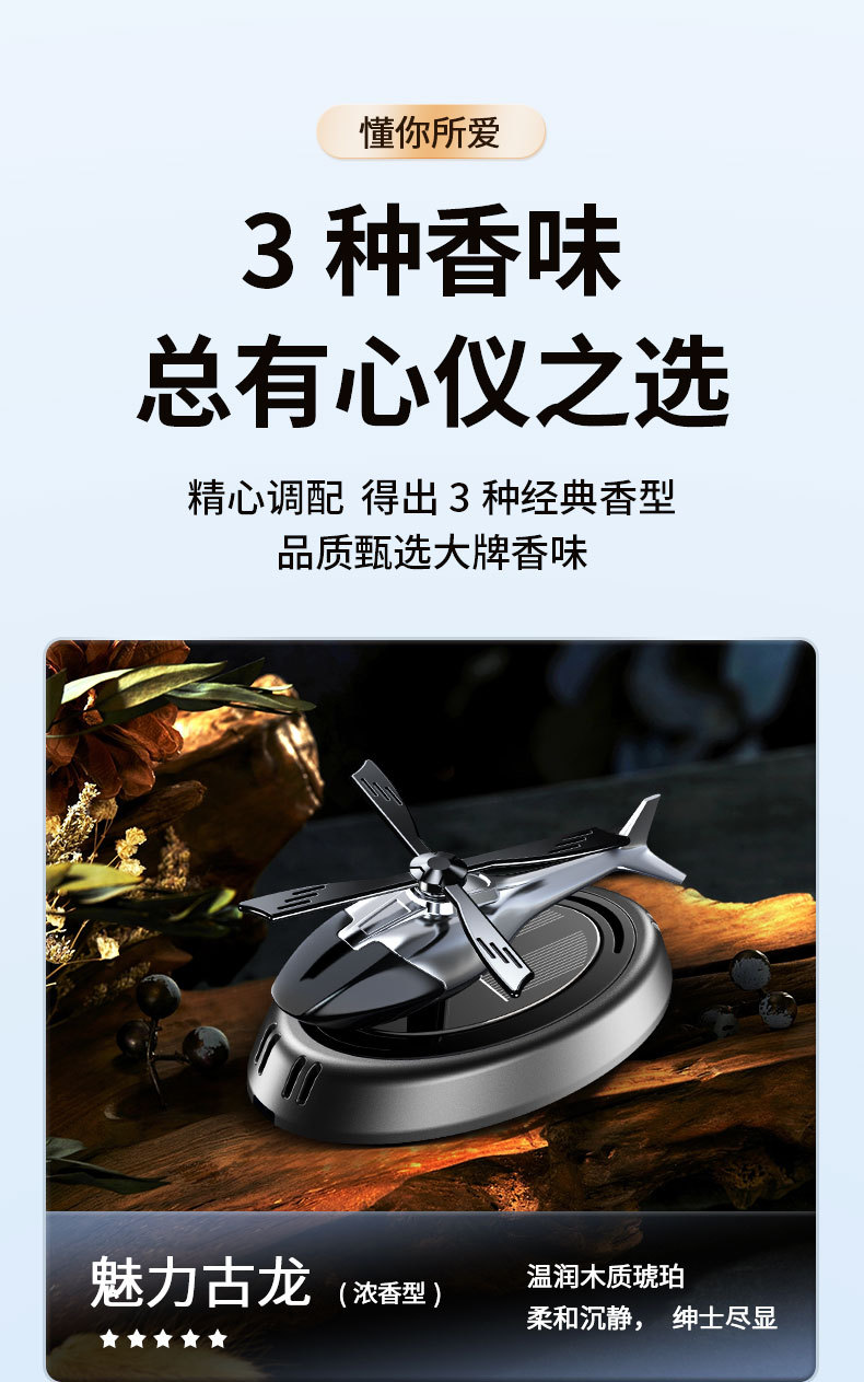 车载香薰车用太阳能香水旋转飞机摆件汽车除异味香氛车上持久飘香