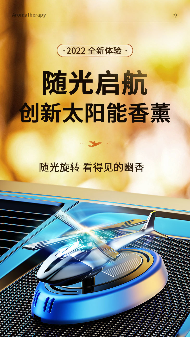 车载太阳能香薰汽车中控台旋转直升机飞机摆件车内去异味高档香水