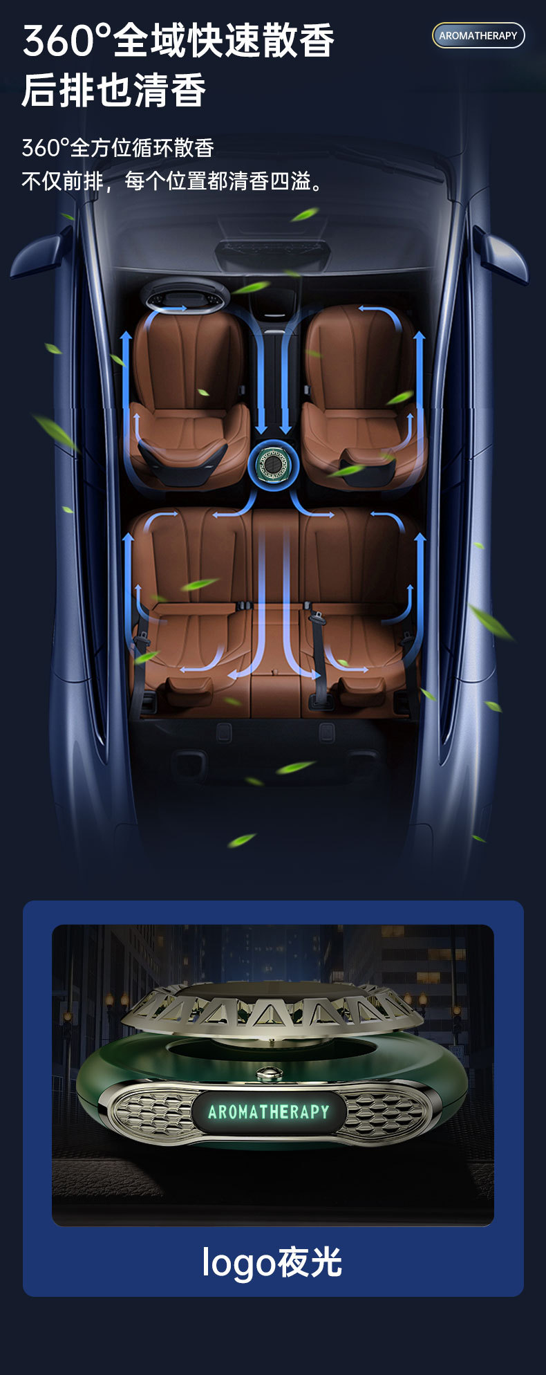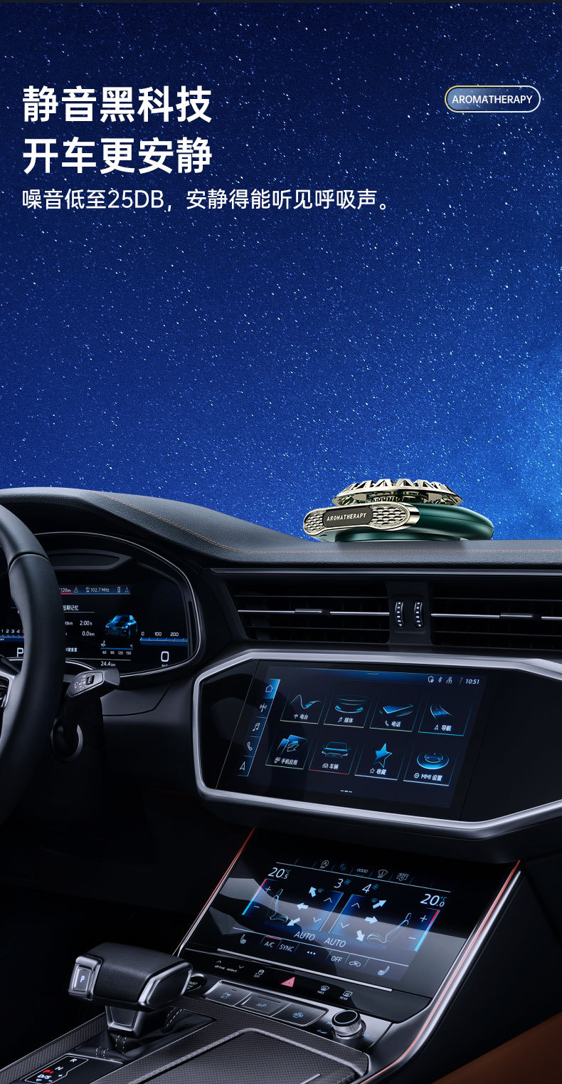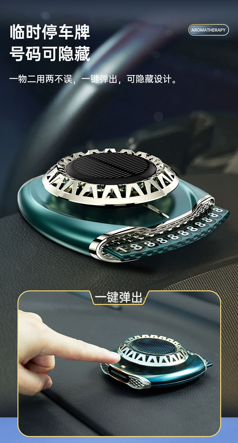 智能旋转车载香薰盒太阳能香水摆件除异臭味多功能汽车号码牌