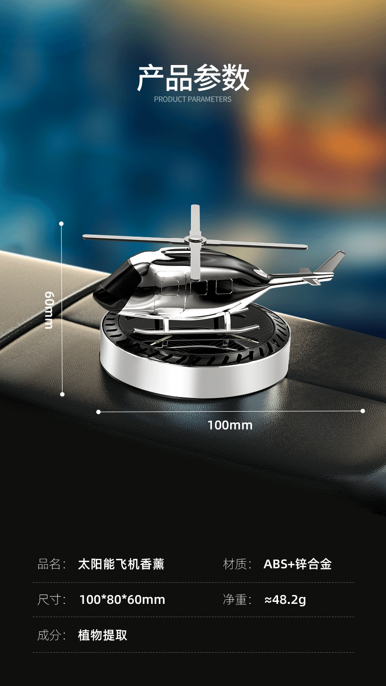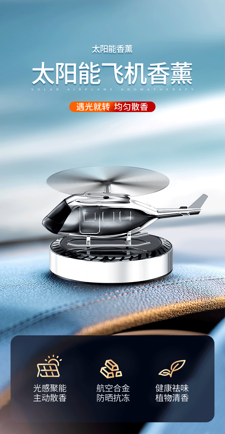 车载香薰太阳能飞机车载中控台香薰摆件汽车旋转香薰车载香薰批发