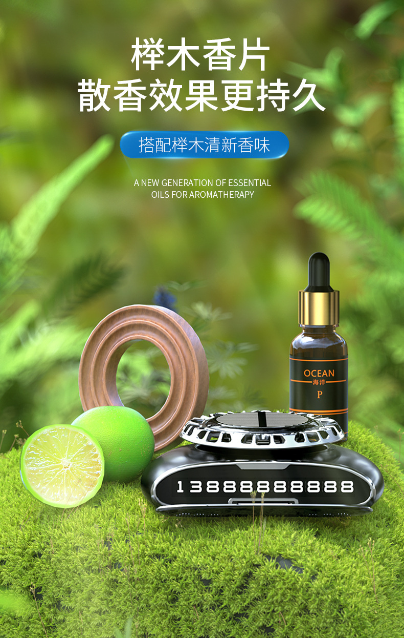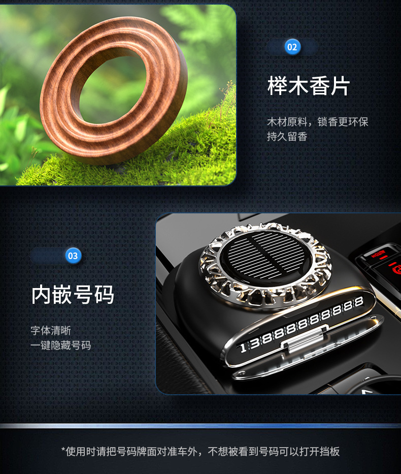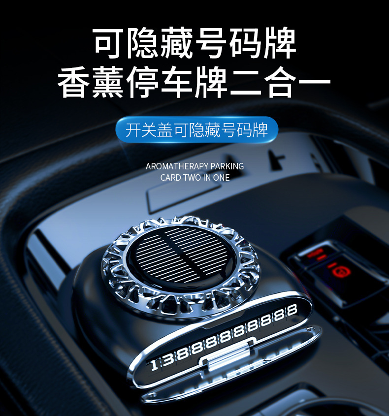 汽车摆件车载香薰香水车用内饰品太阳能旋转香氛临时停车号码牌