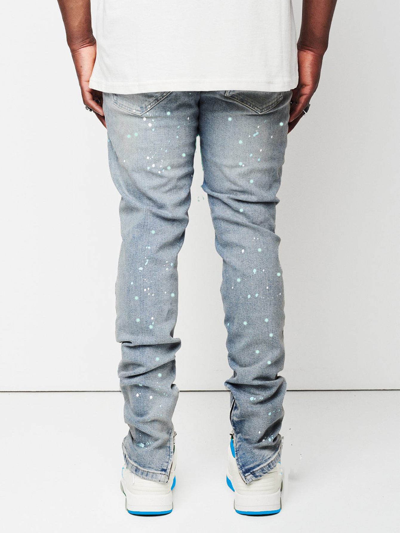 wish欧美新款男士修身破洞小脚裤新款男士油漆牛仔裤厂家直销