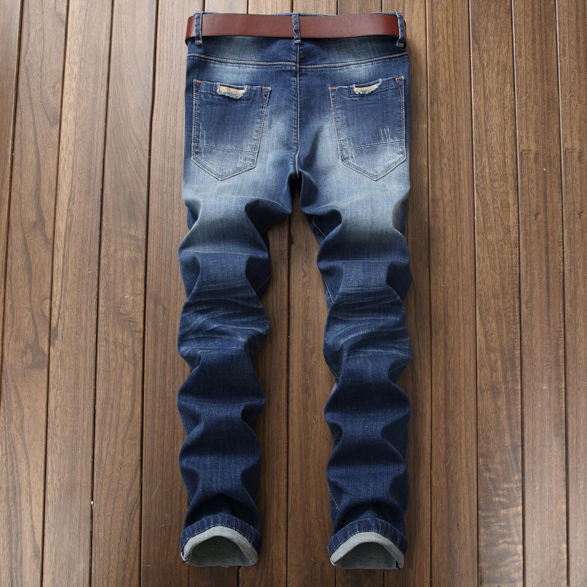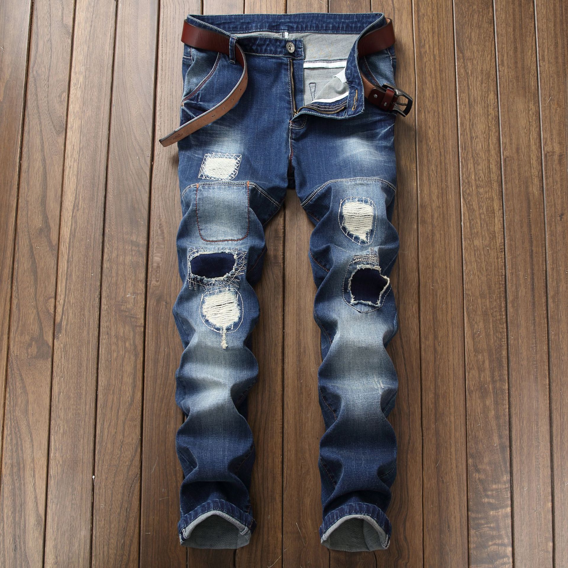 跨境供应新款破洞绣花牛仔裤裤男膝盖破洞绣花补丁个性牛仔裤