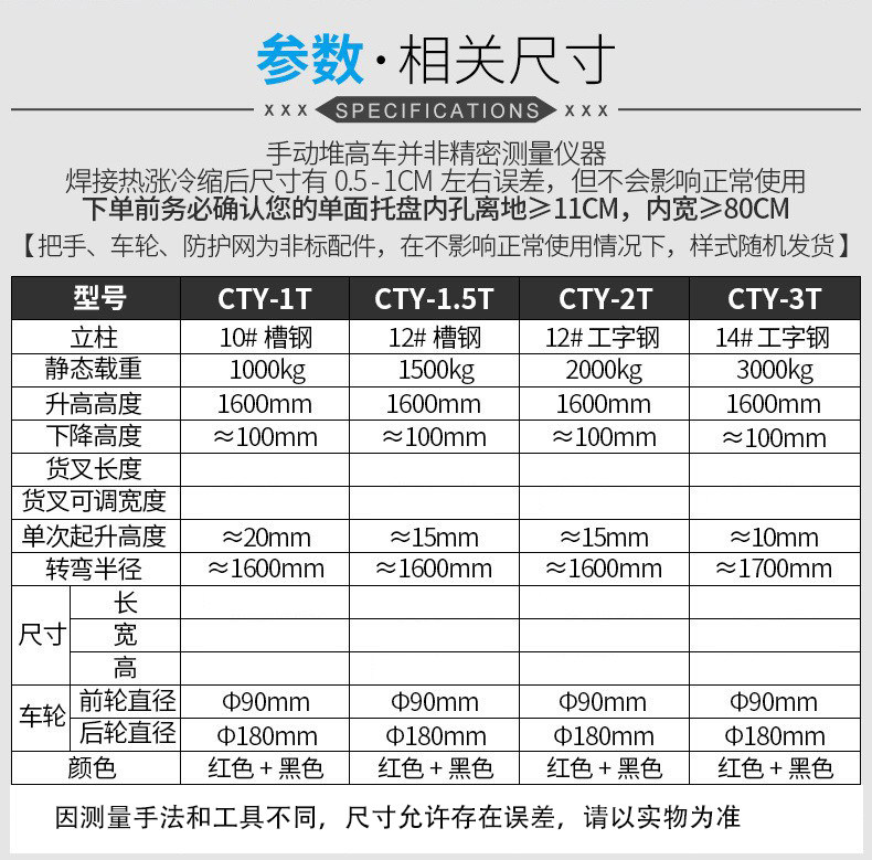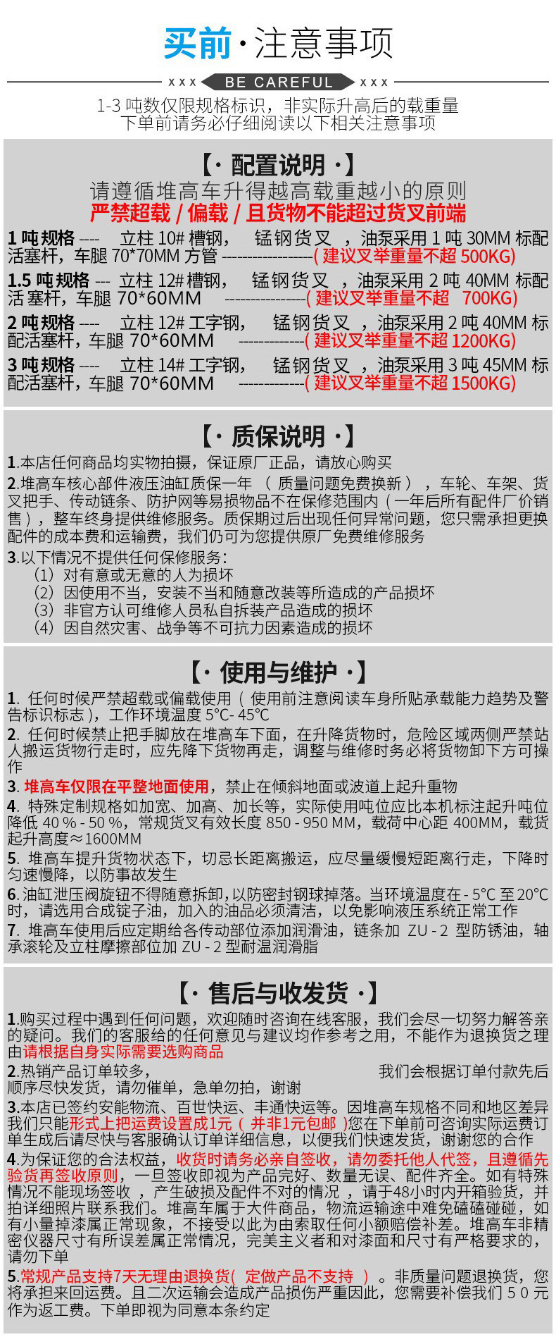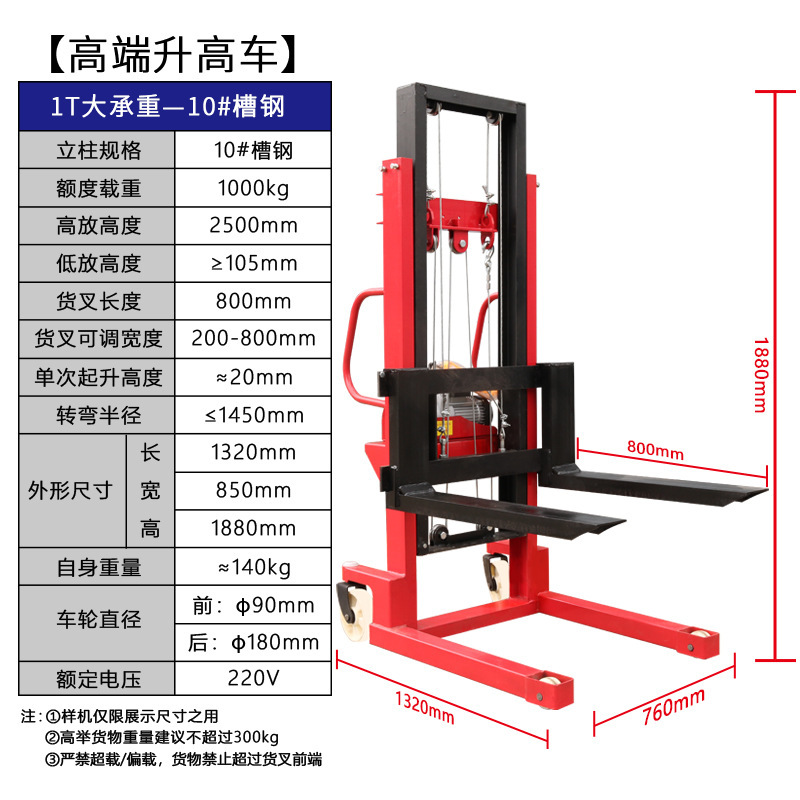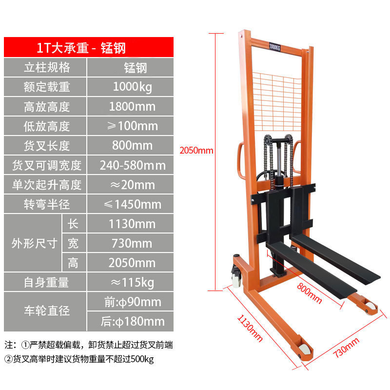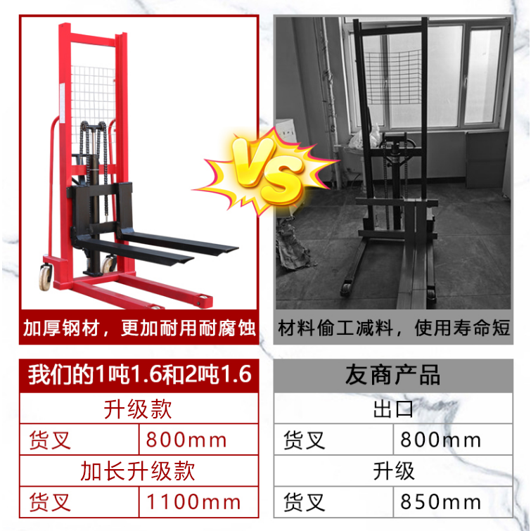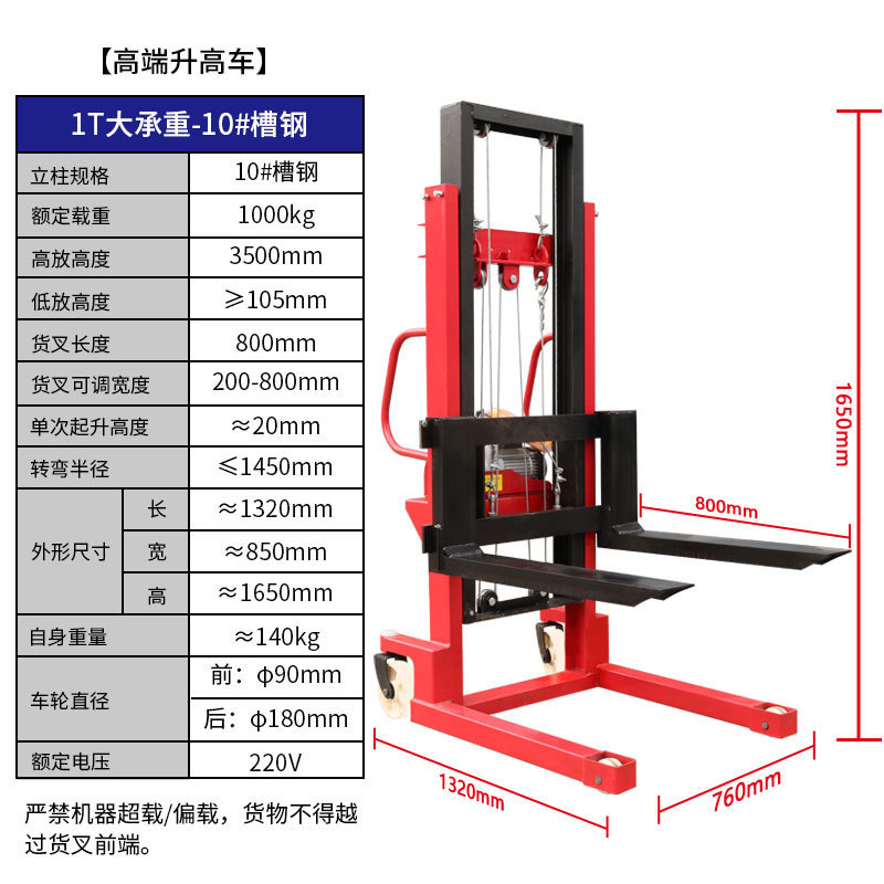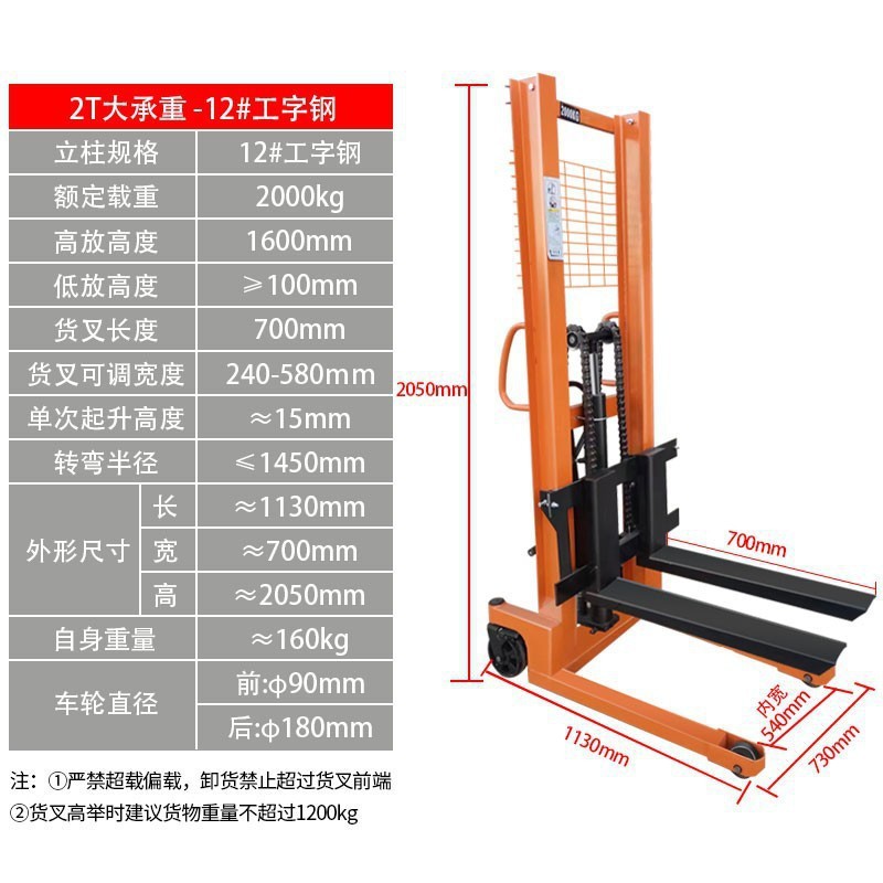 手动搬运升高车电动叉车手动 手动液压堆高车电动堆高车1吨2吨3吨