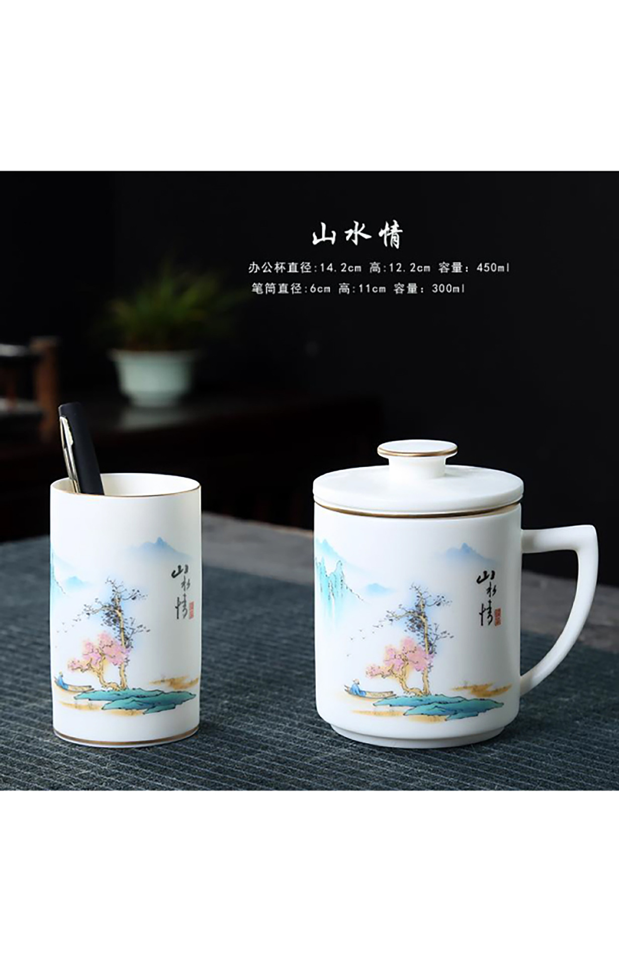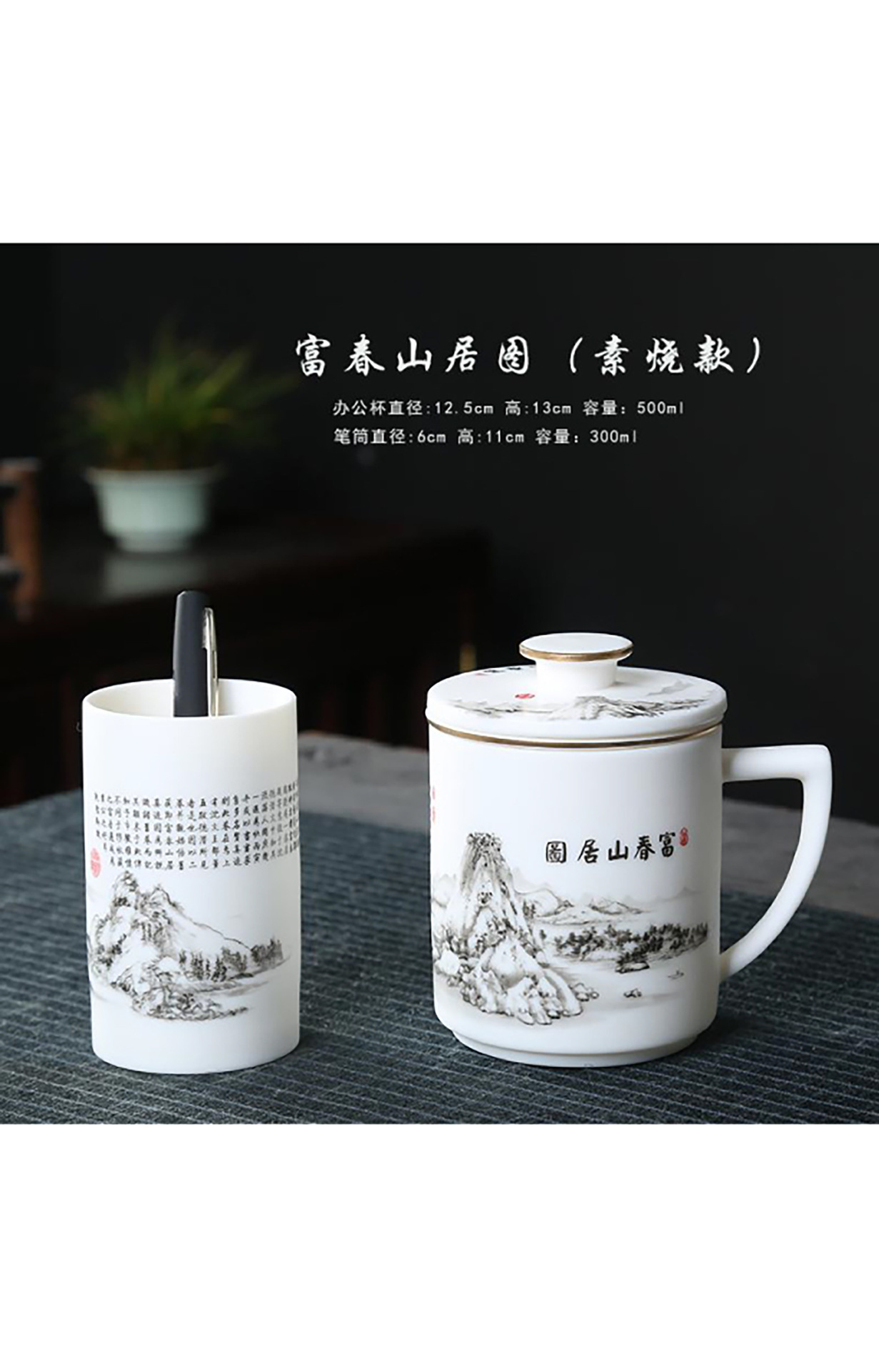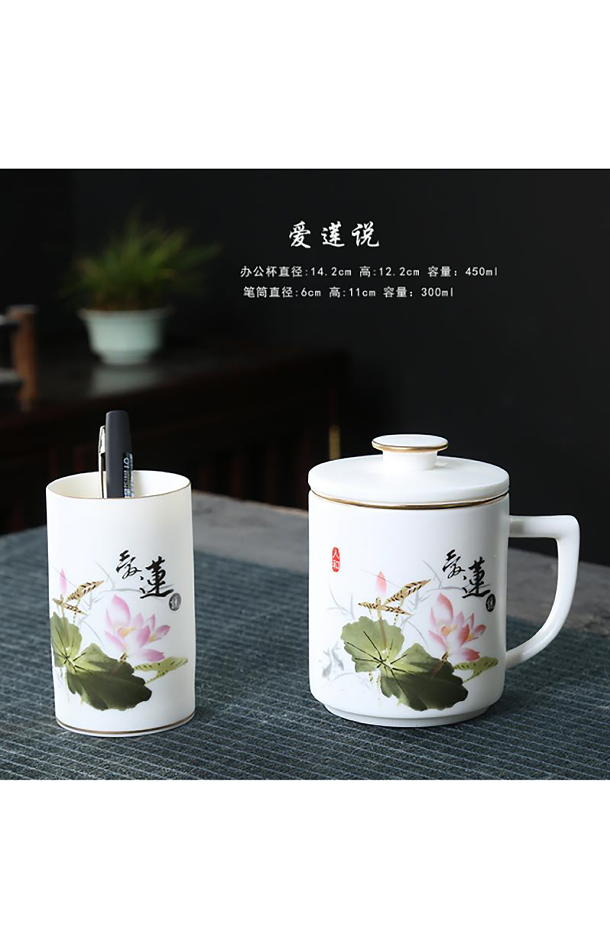 陶瓷办公杯盖 茶水离过滤个人杯办公室大容量马克杯 白瓷礼盒批发