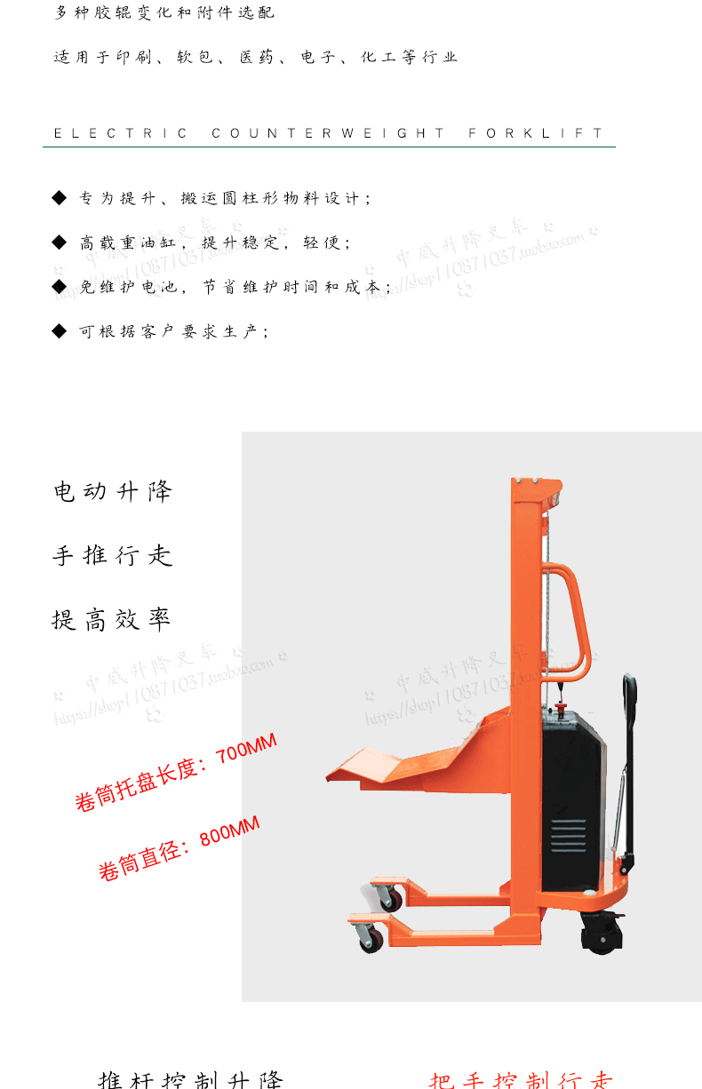 供应半电动卷膜搬运车提升堆高圆柱形物料卷筒纸卷上料工位叉车