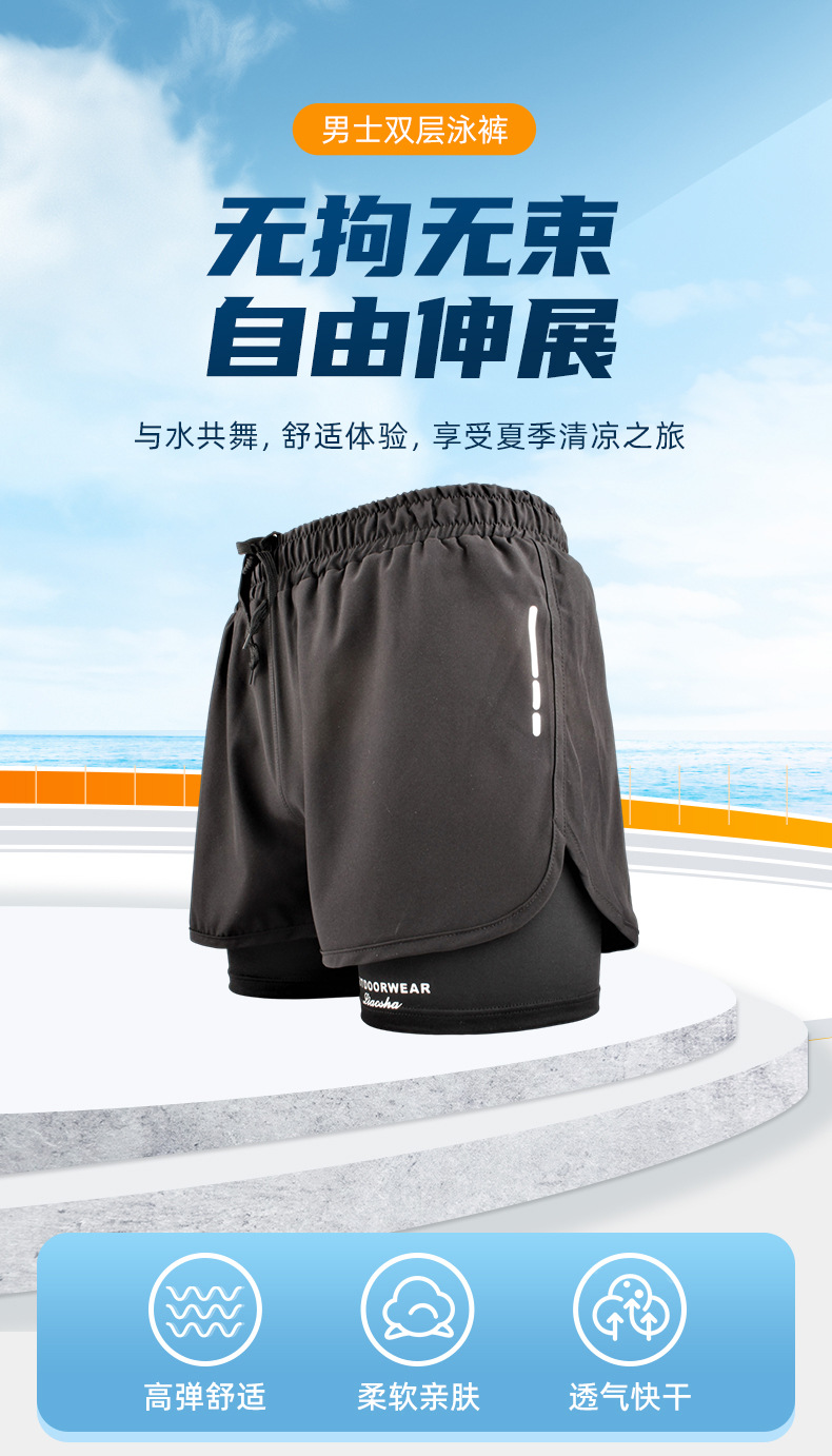 男士运动短裤夏季爆款双层速干游泳裤防尴尬泳裤跑步健身训练短裤