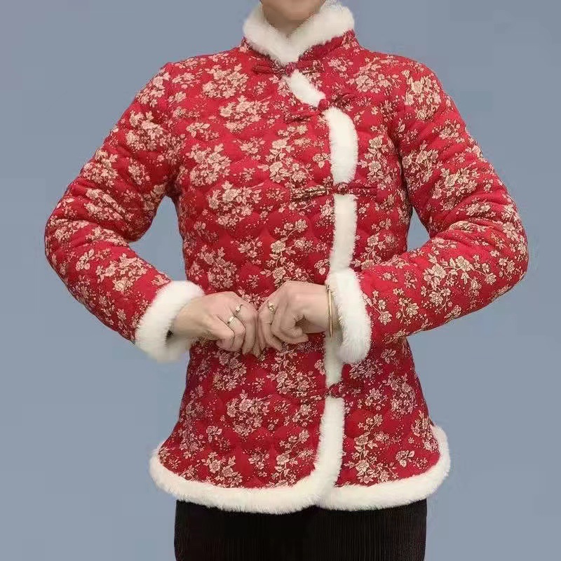 冬季新款东北花棉袄女时尚中国风加绒加厚保暖洋气新中式棉服棉衣