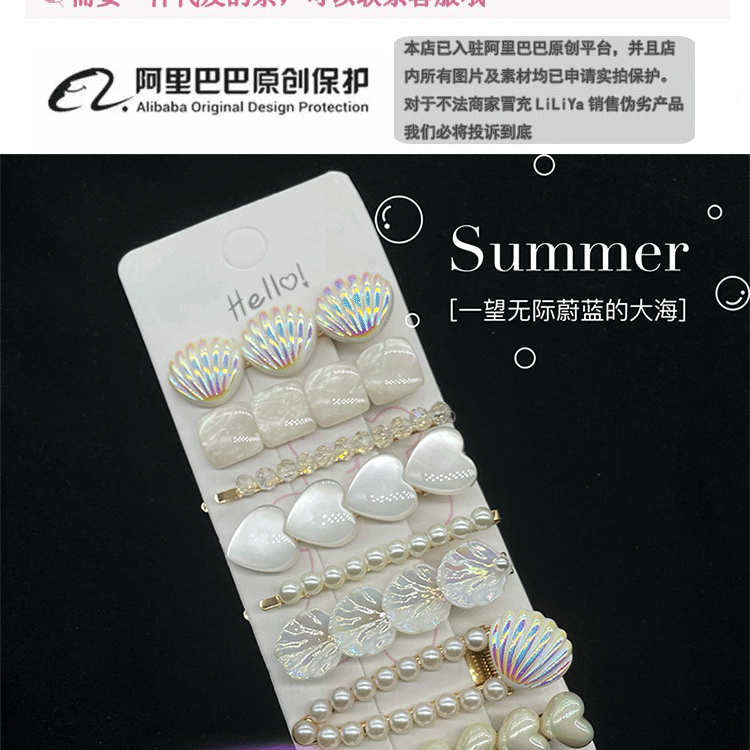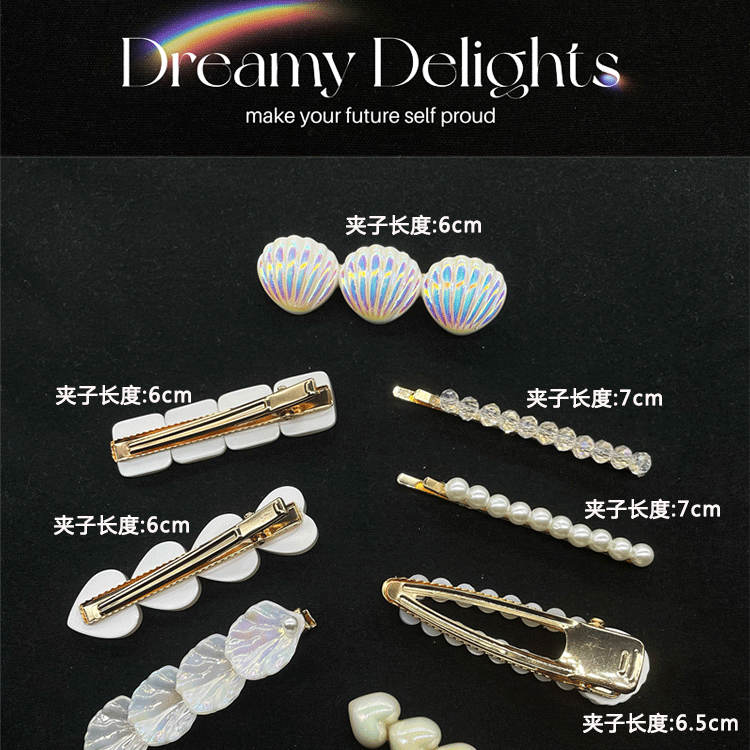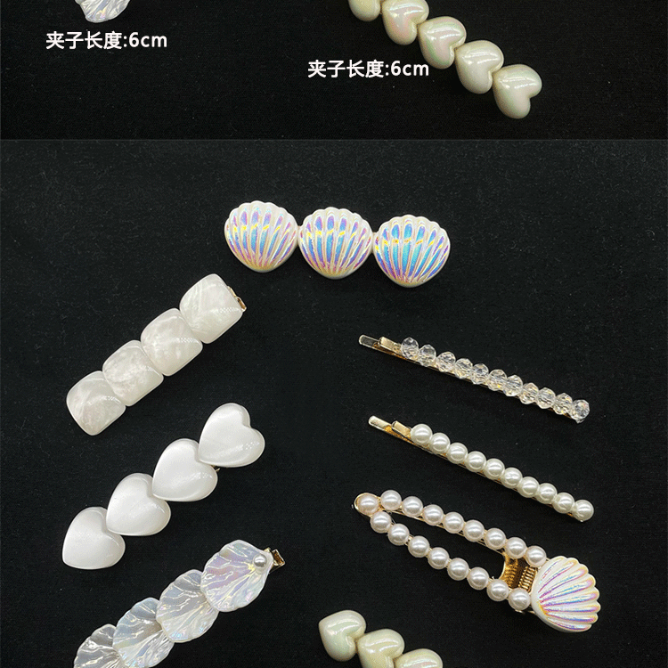 日韩清晰珍珠发夹仿贝母鸭嘴夹人鱼姬贝壳ins风爱心碎发夹