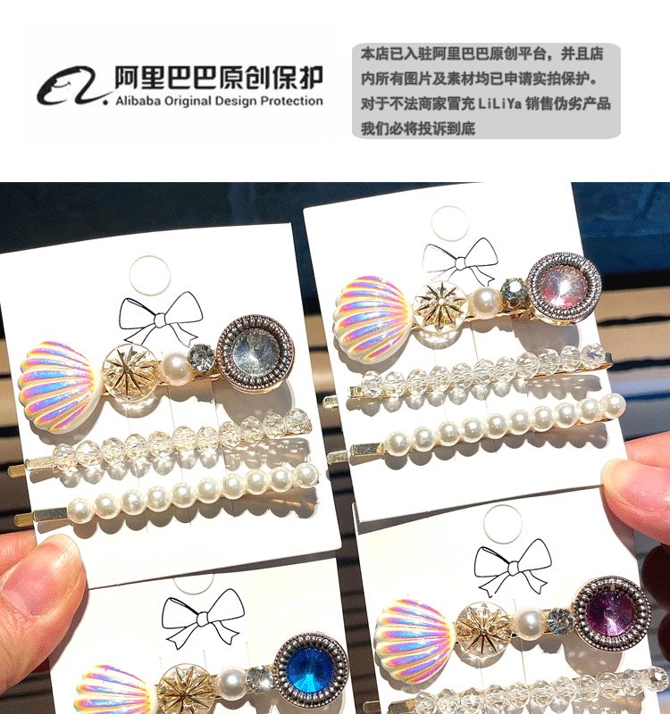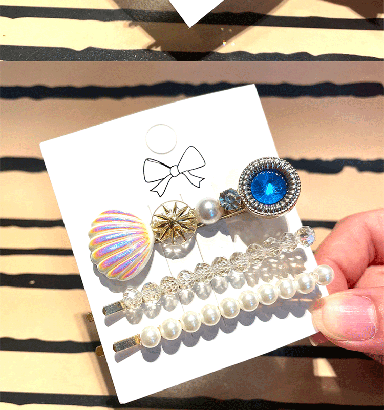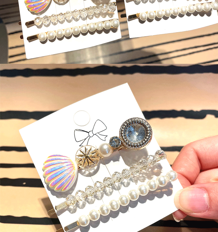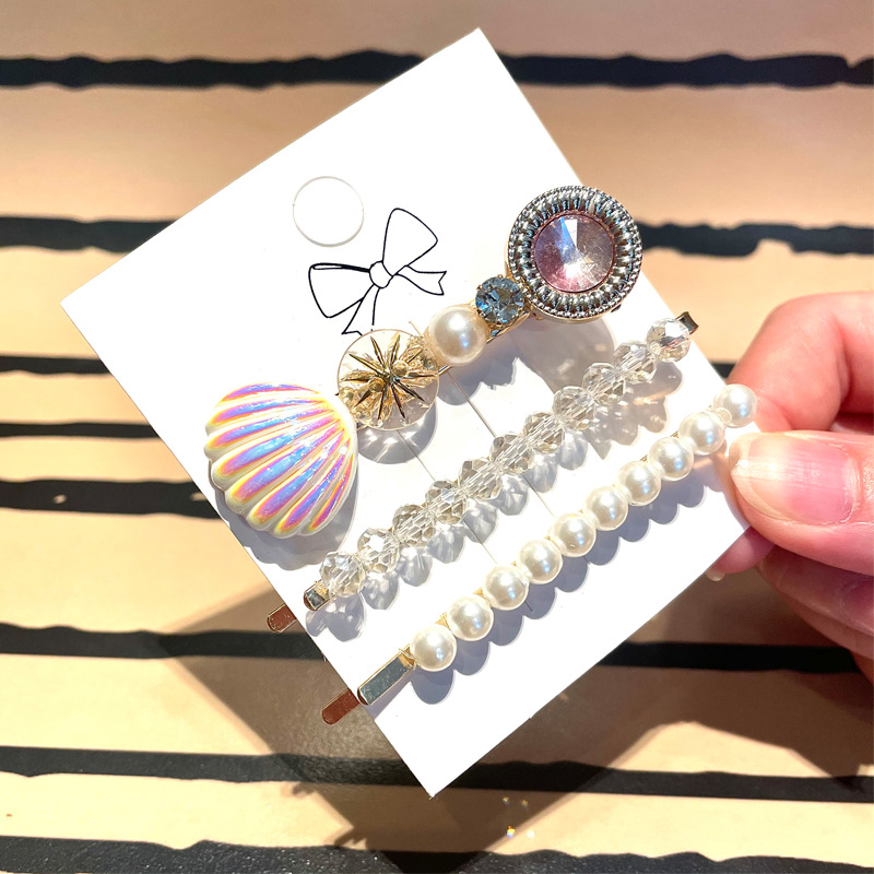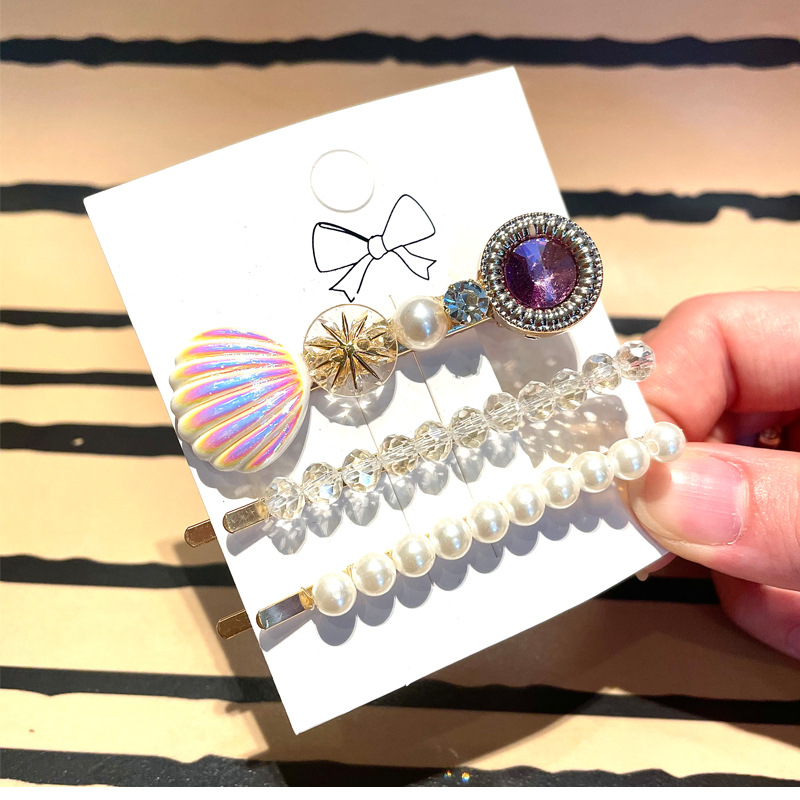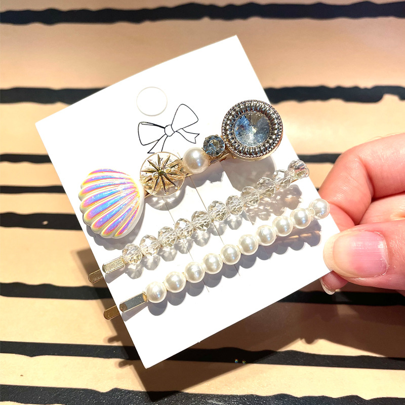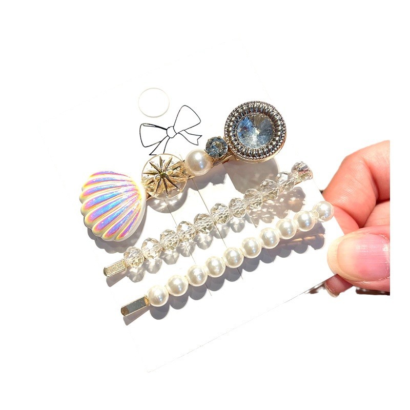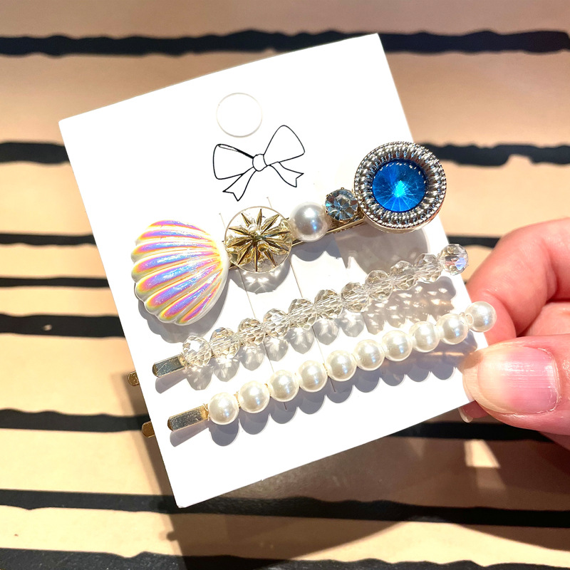 新款贝壳仙女棒公主发夹套装珍珠水晶一字夹亚克力八芒星甜美刘海