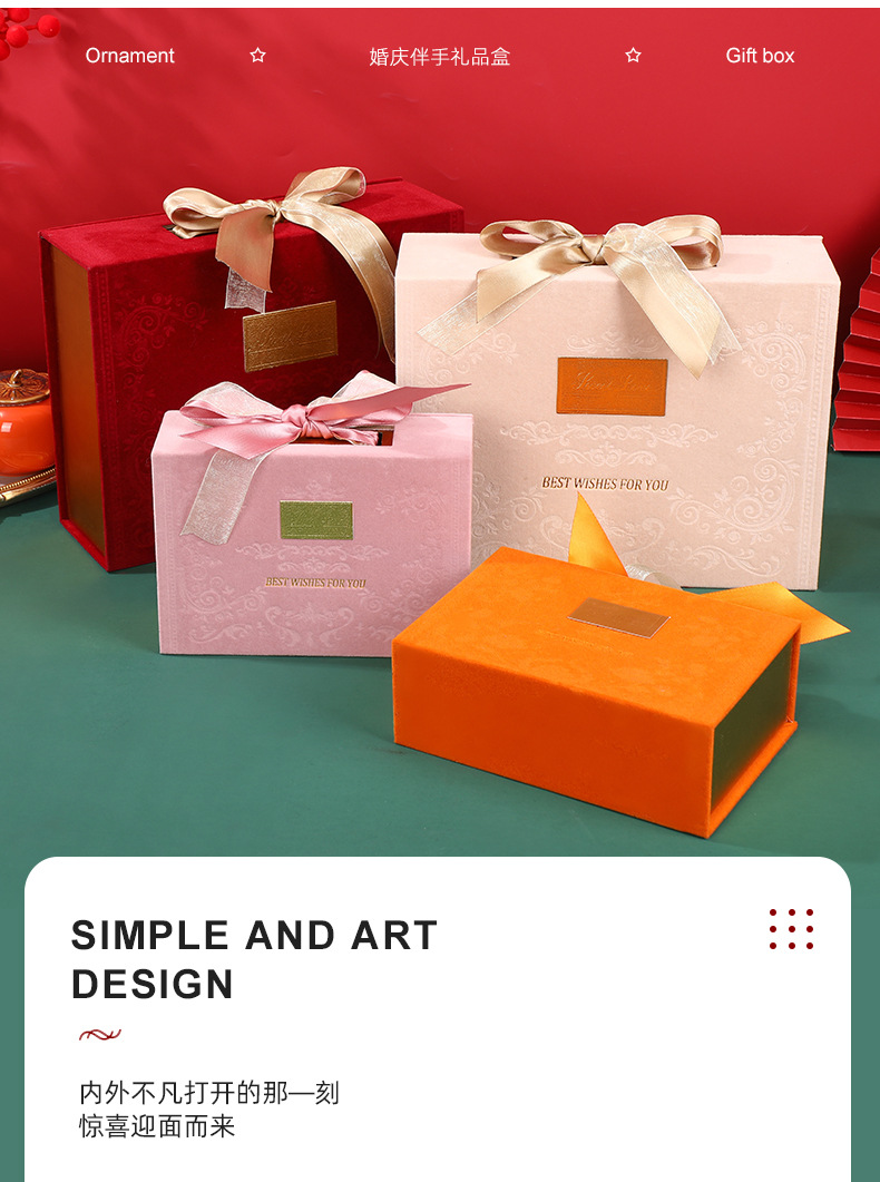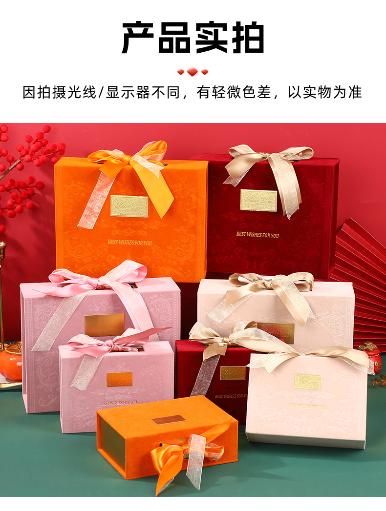 烫金丝绒礼盒 轻奢蝴蝶结绒布礼品盒 结婚伴手礼盒喜糖盒空盒现货
