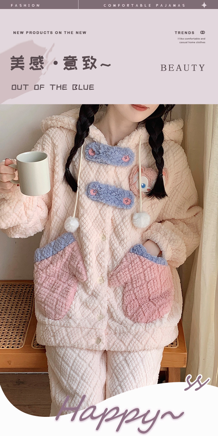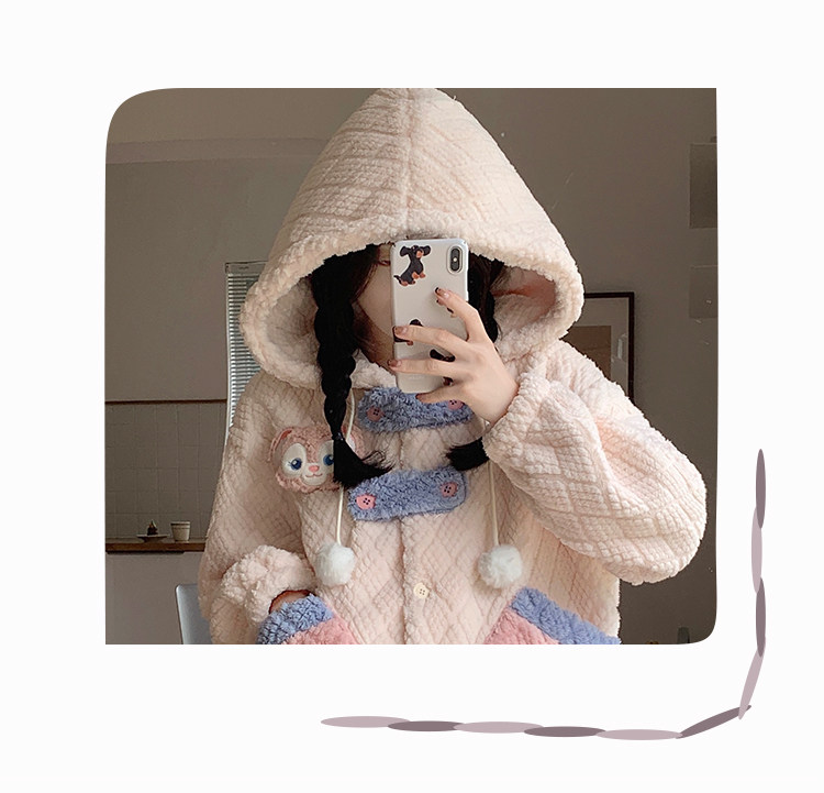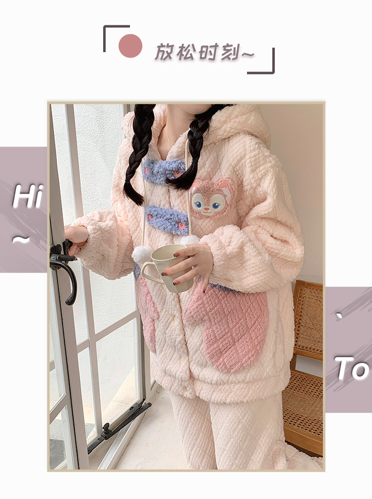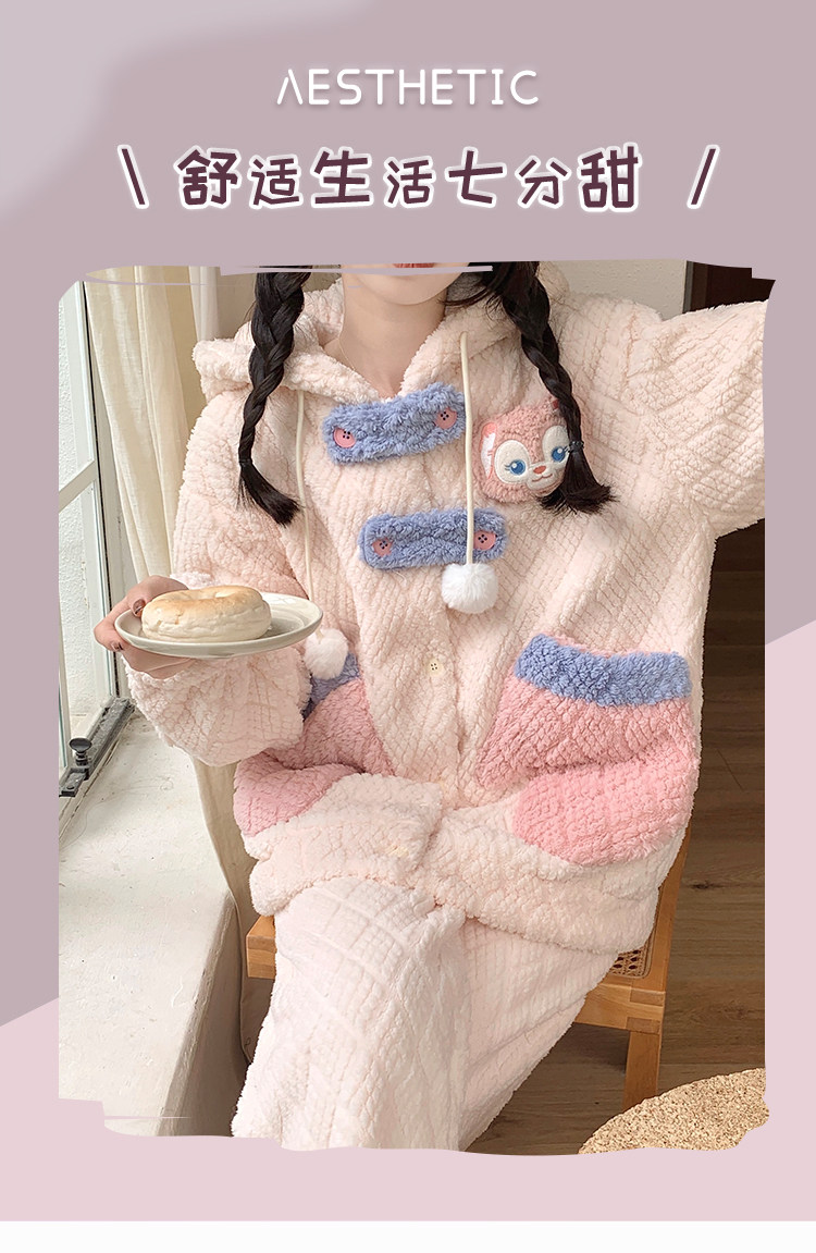 秋冬季睡衣女款冬季加厚加绒玲娜贝儿连帽拉链家居服湖南省服