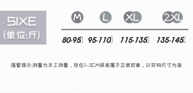 | yes-size xxl (recommended 65.50 kg-77.50 kg(是-XXL码(建议131—155斤)) | USD $25.59 | 614 piece available |