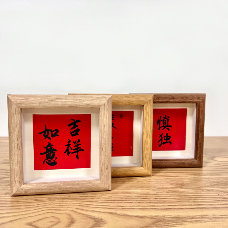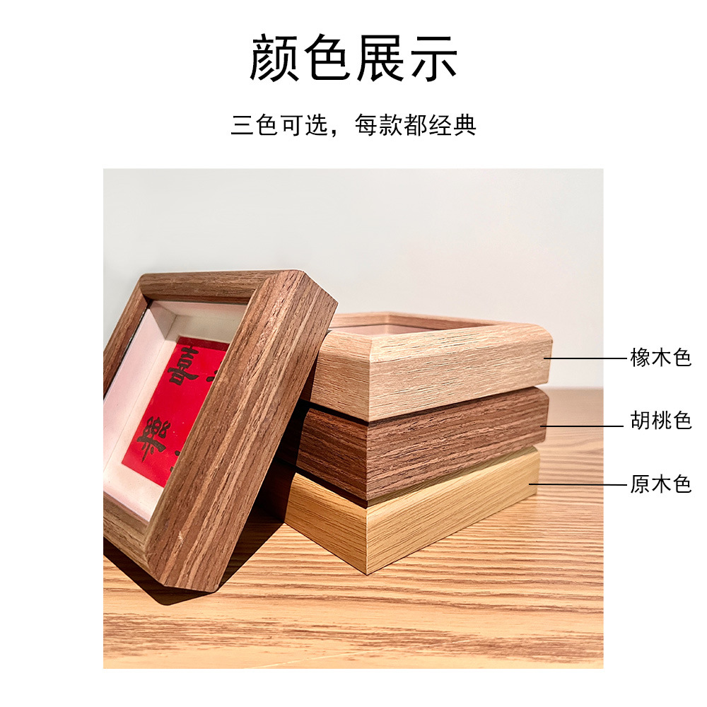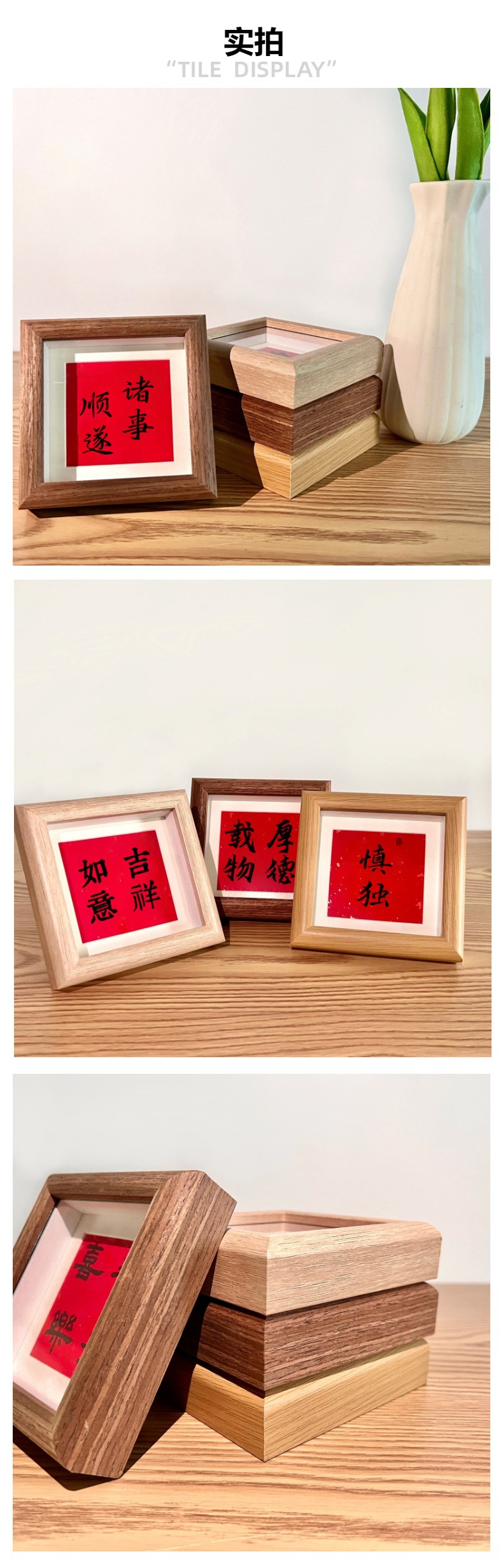 正方形4寸木质中空相框厂家直发油画棒迷你画框书法diy桌面摆台