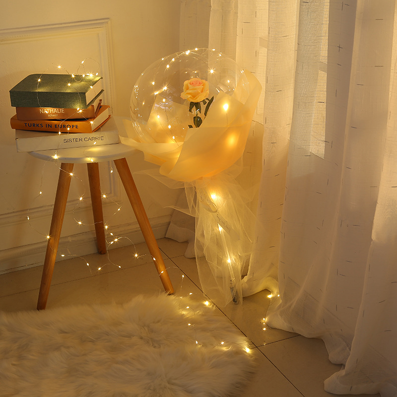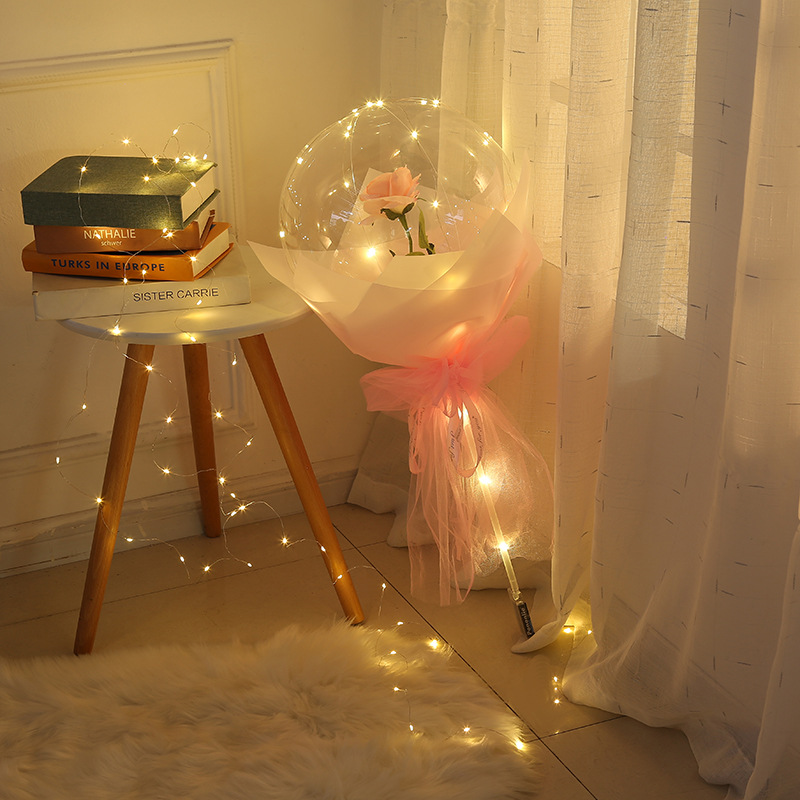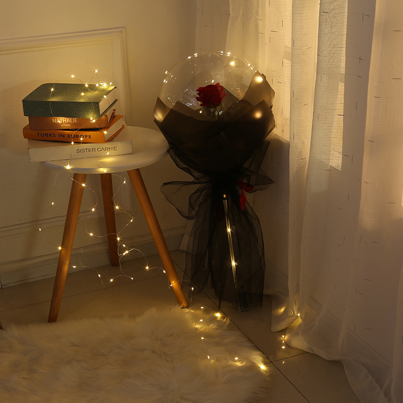 圣诞节夜市摆摊礼物情人节玫瑰花波波球婚房玫瑰花束LED发光气球