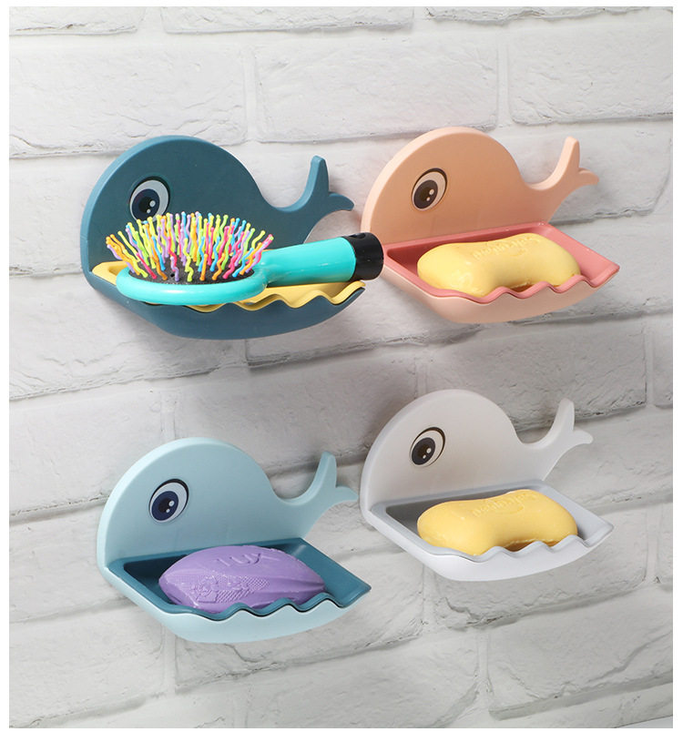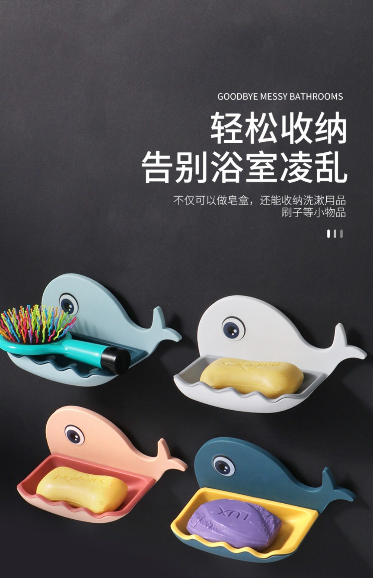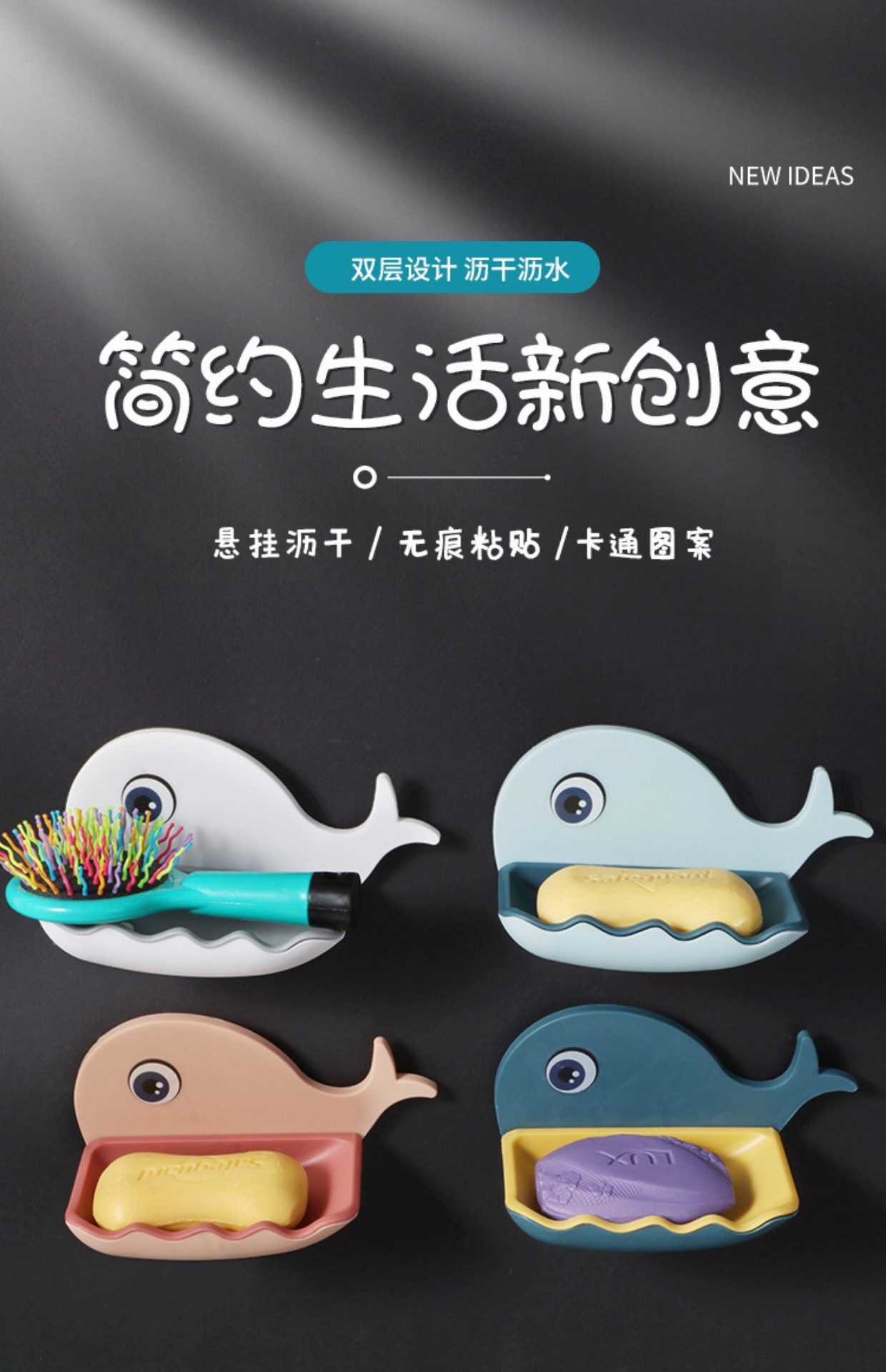 鲸鱼香皂盒肥皂盒可爱免打孔壁挂式吸盘家用浴室卫生间沥水置物架