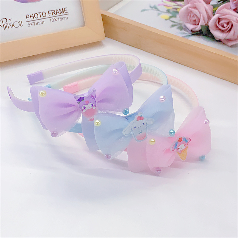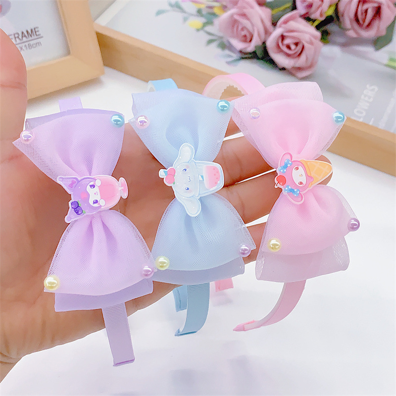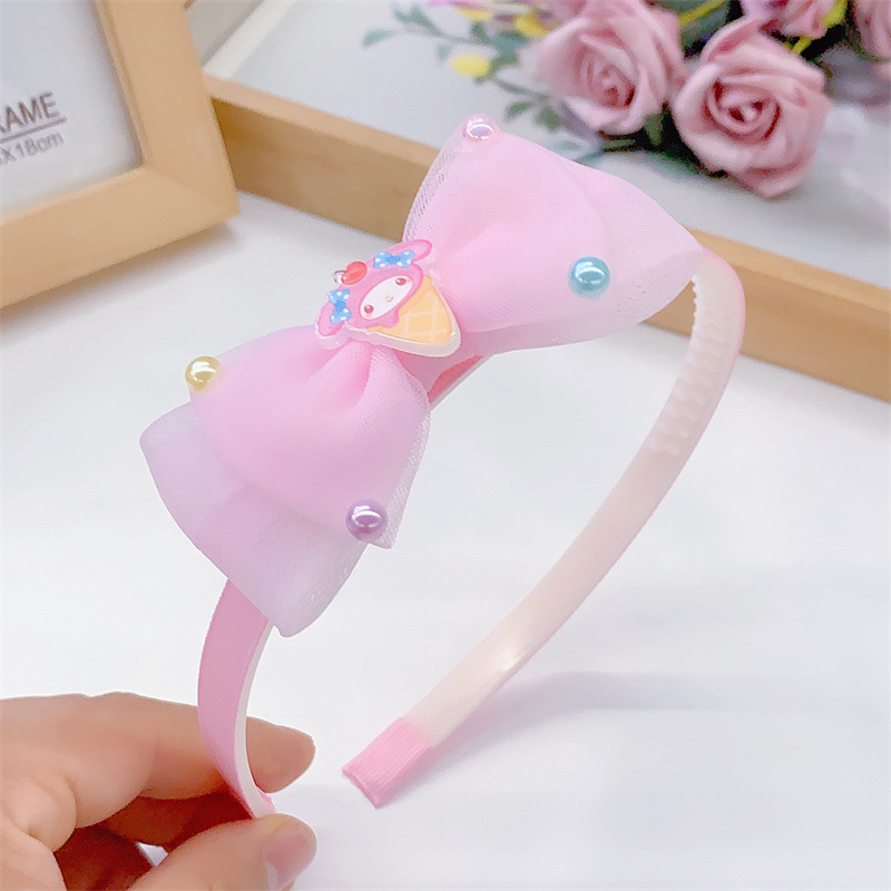 新款发饰批发儿童小女孩雪纺蝴蝶结镶冰淇淋卡通动物发箍发卡头箍