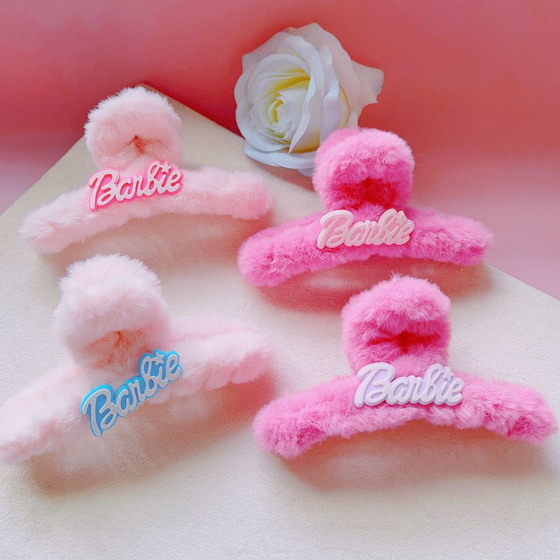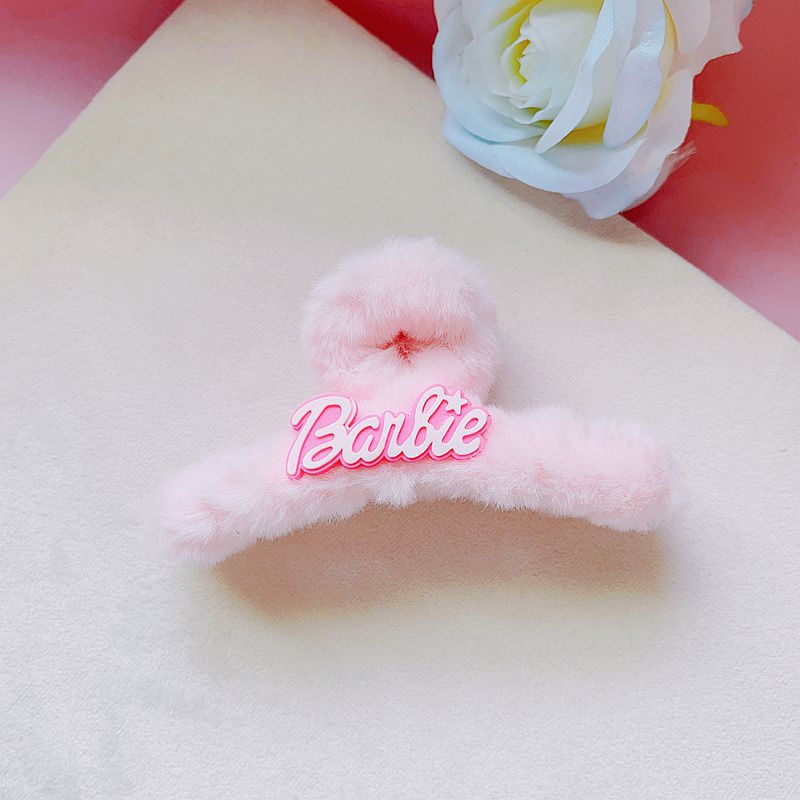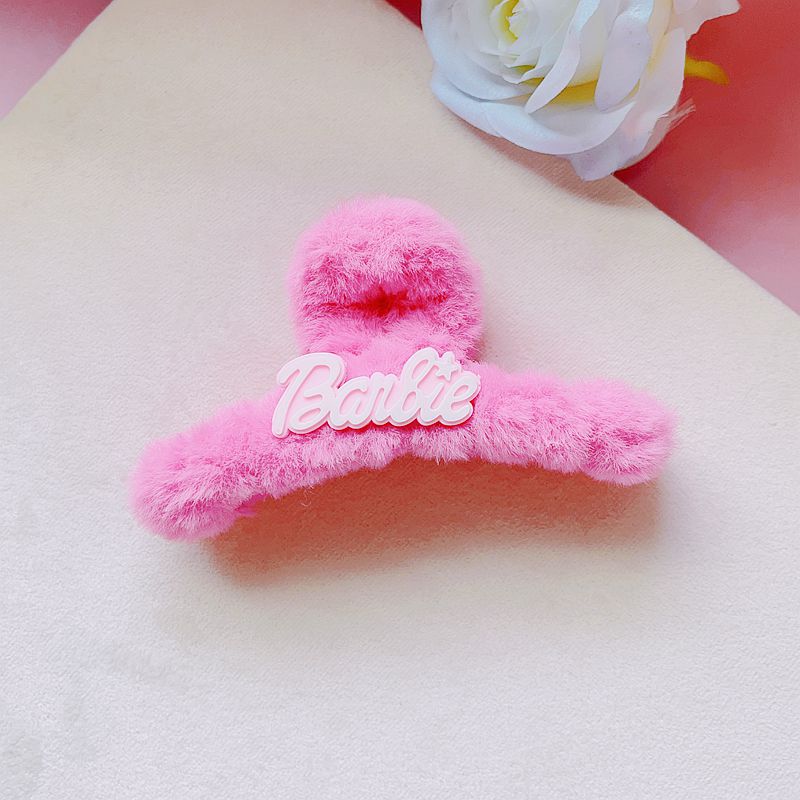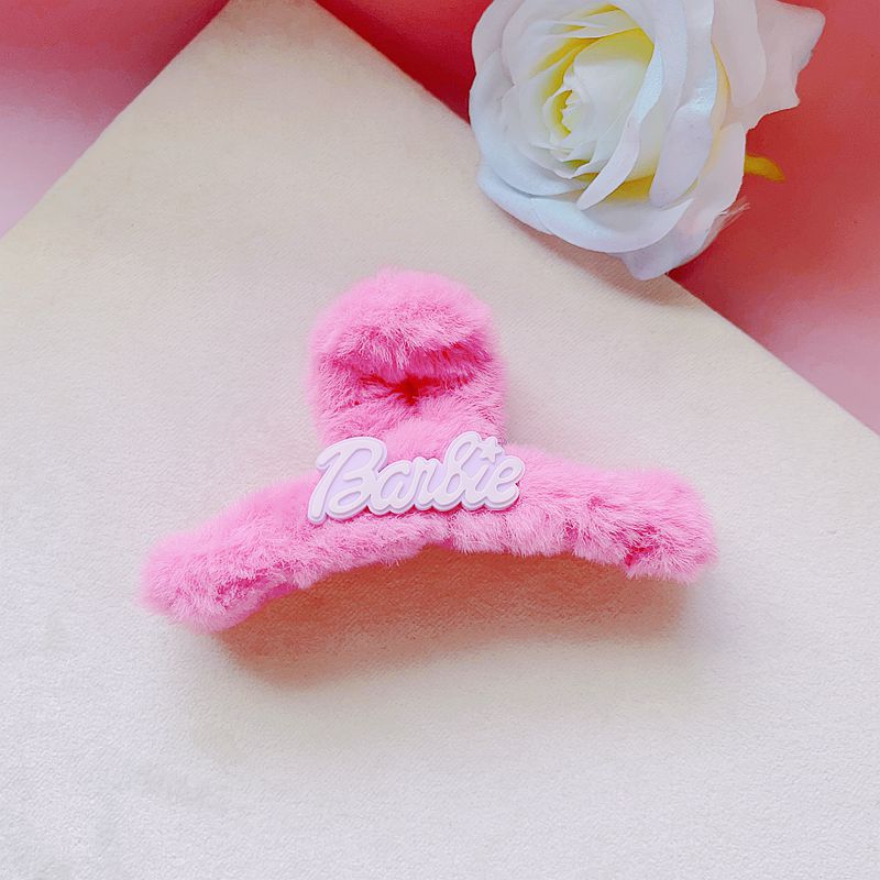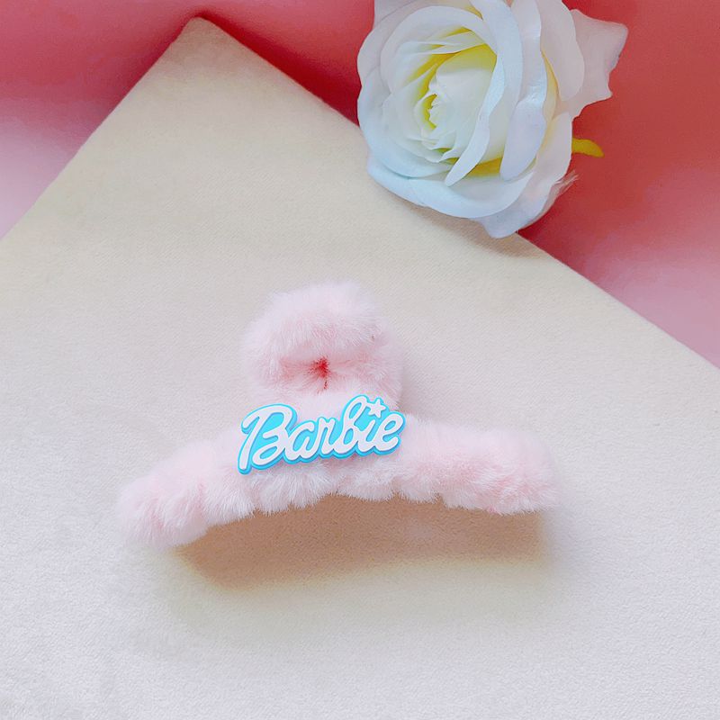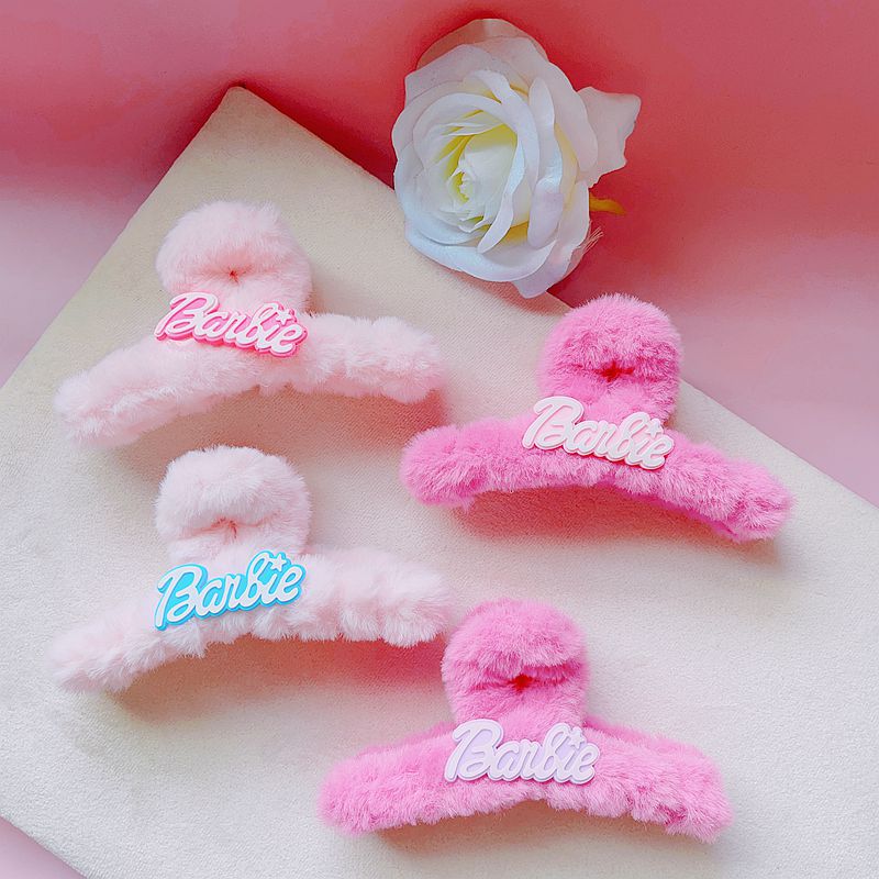 秋冬新款粉色系可爱卡通字母毛绒抓夹少女心马尾鲨鱼夹头饰