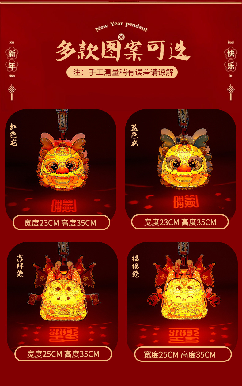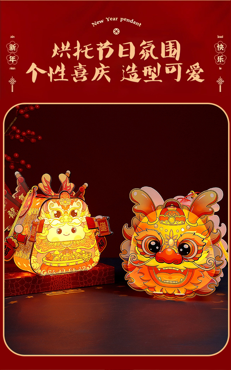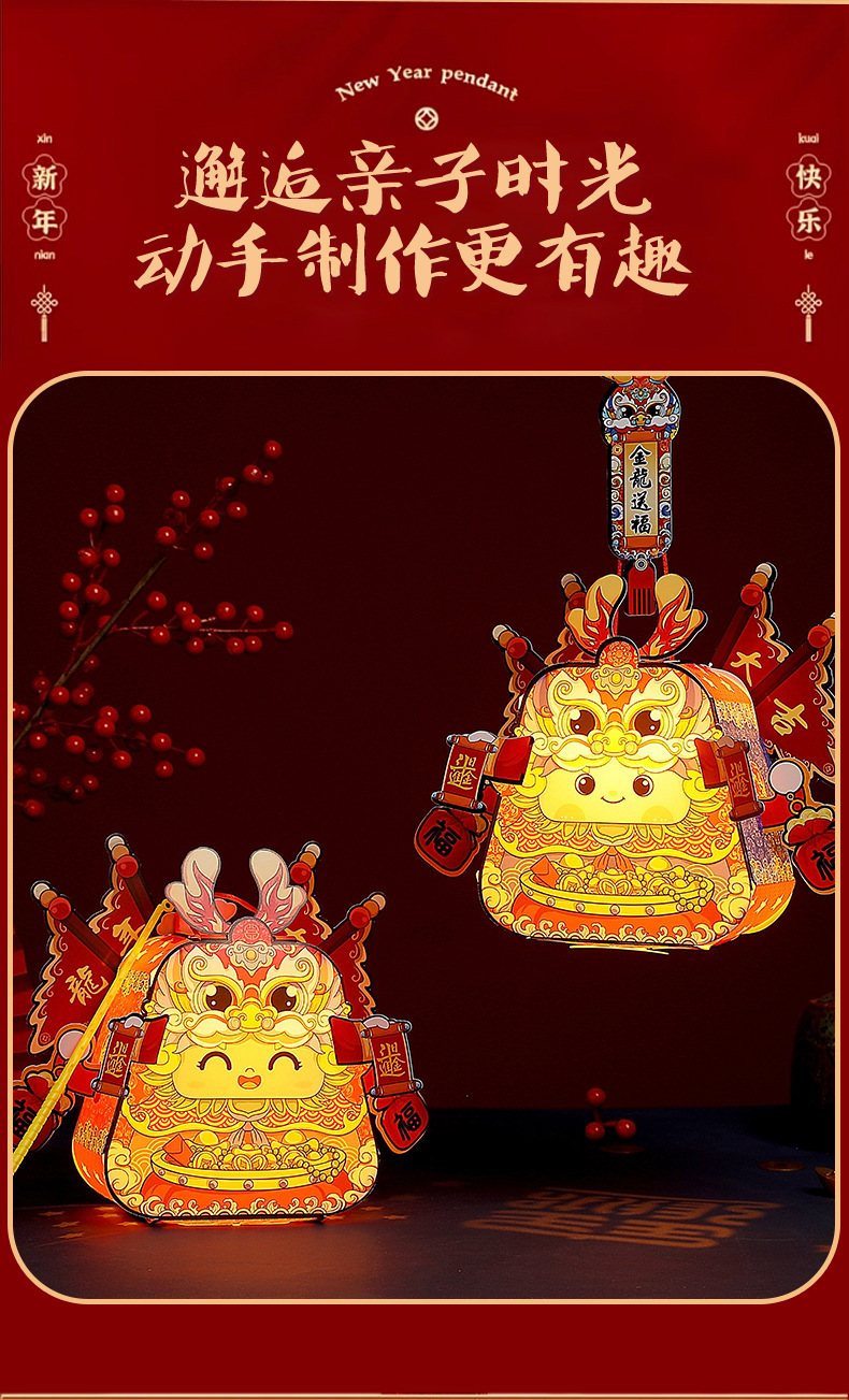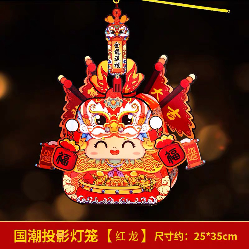 2024龙年灯笼PVC发光手提花灯国潮投影小灯笼亲子手工DIY材料包