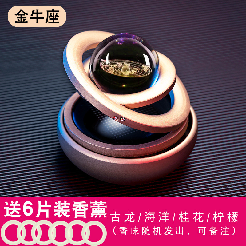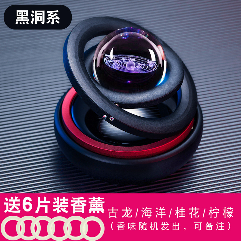 跨境车载香水太阳能蓄电水晶球旋转双环悬浮汽车摆件车内装饰香薰